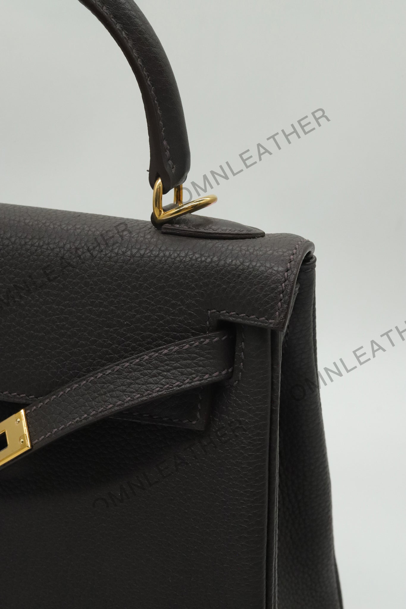 Verona 25 Kelly Style Fully Handmade Togo Leather Ebony Color Gold Hardware