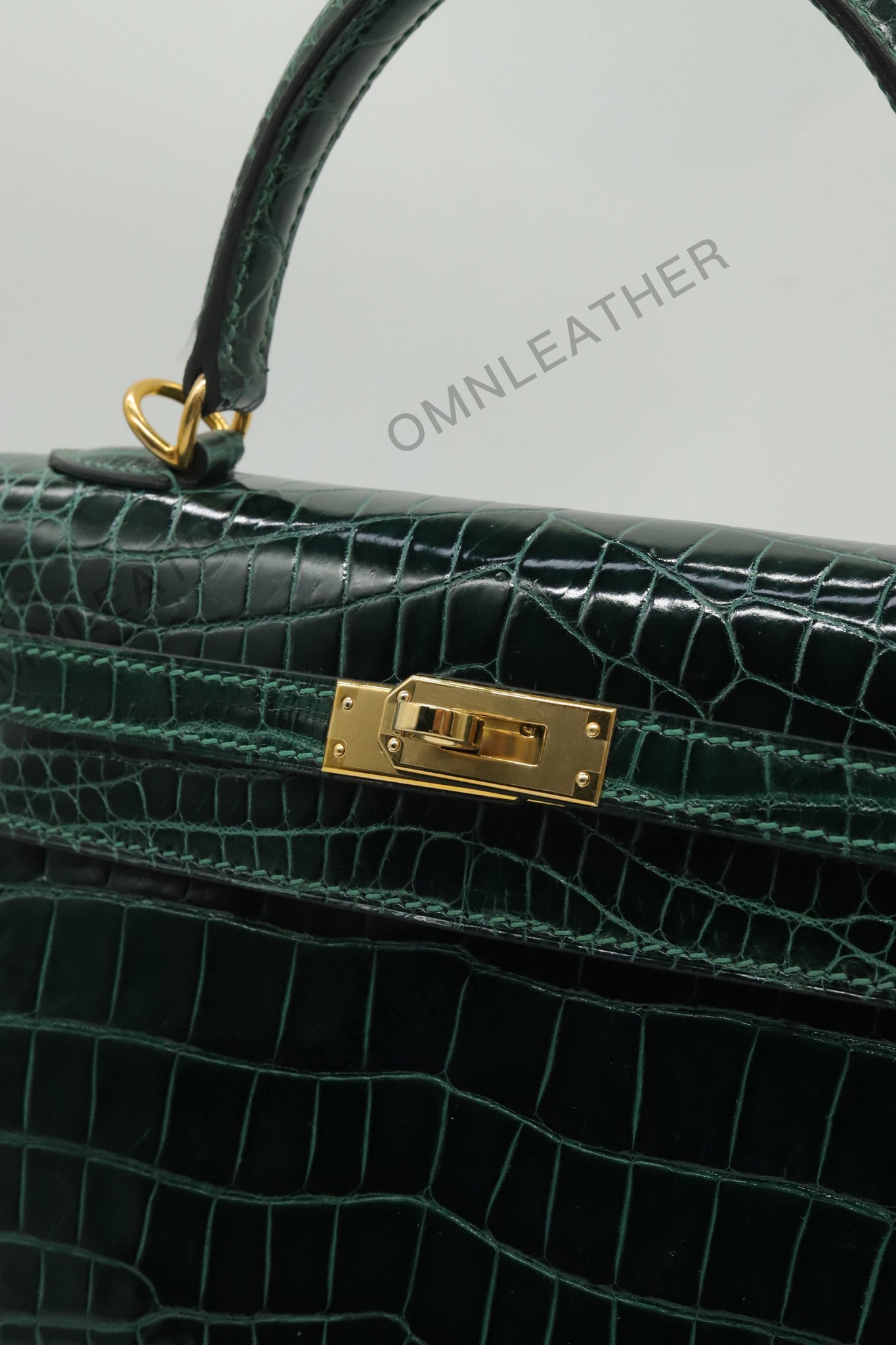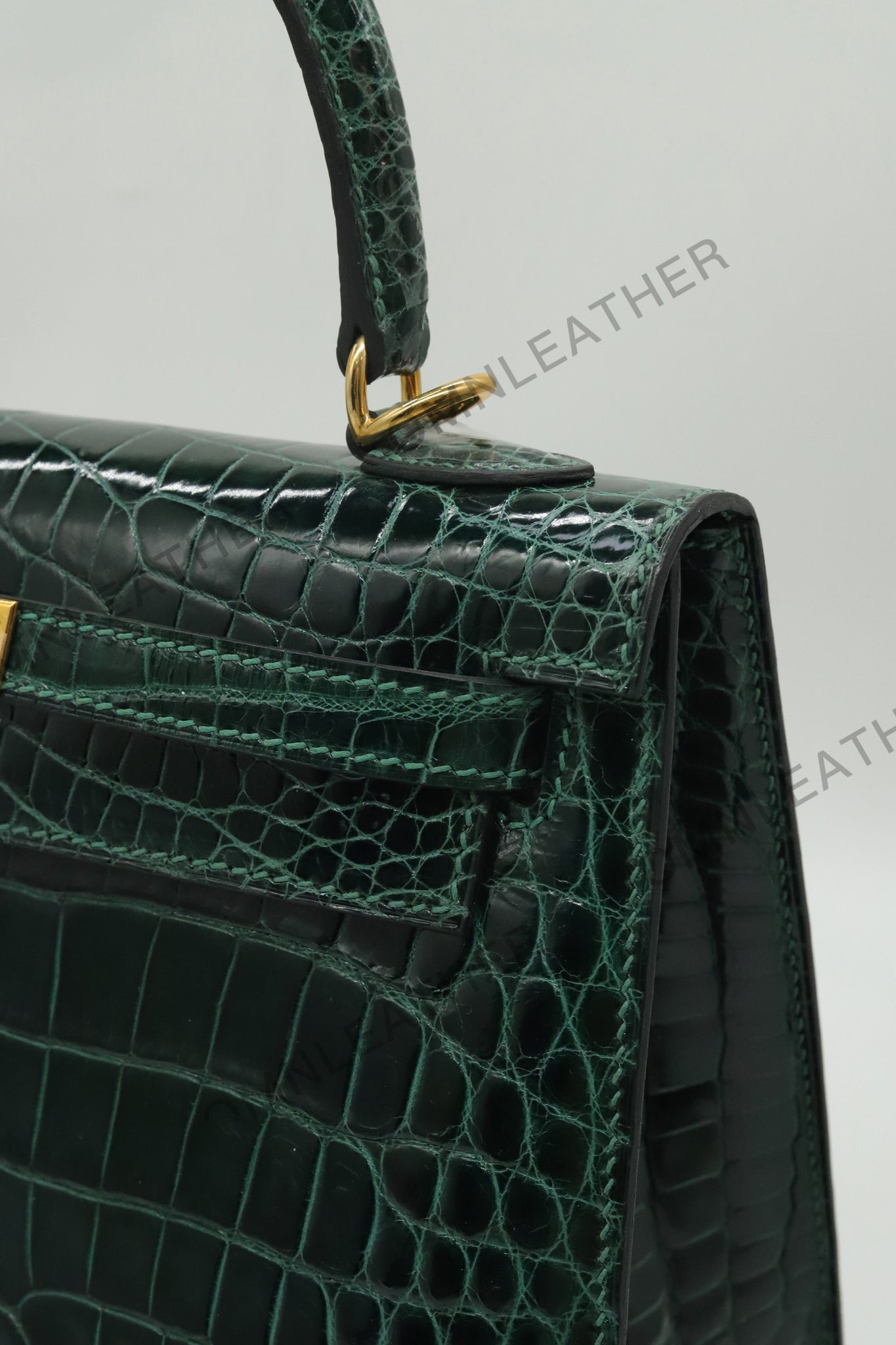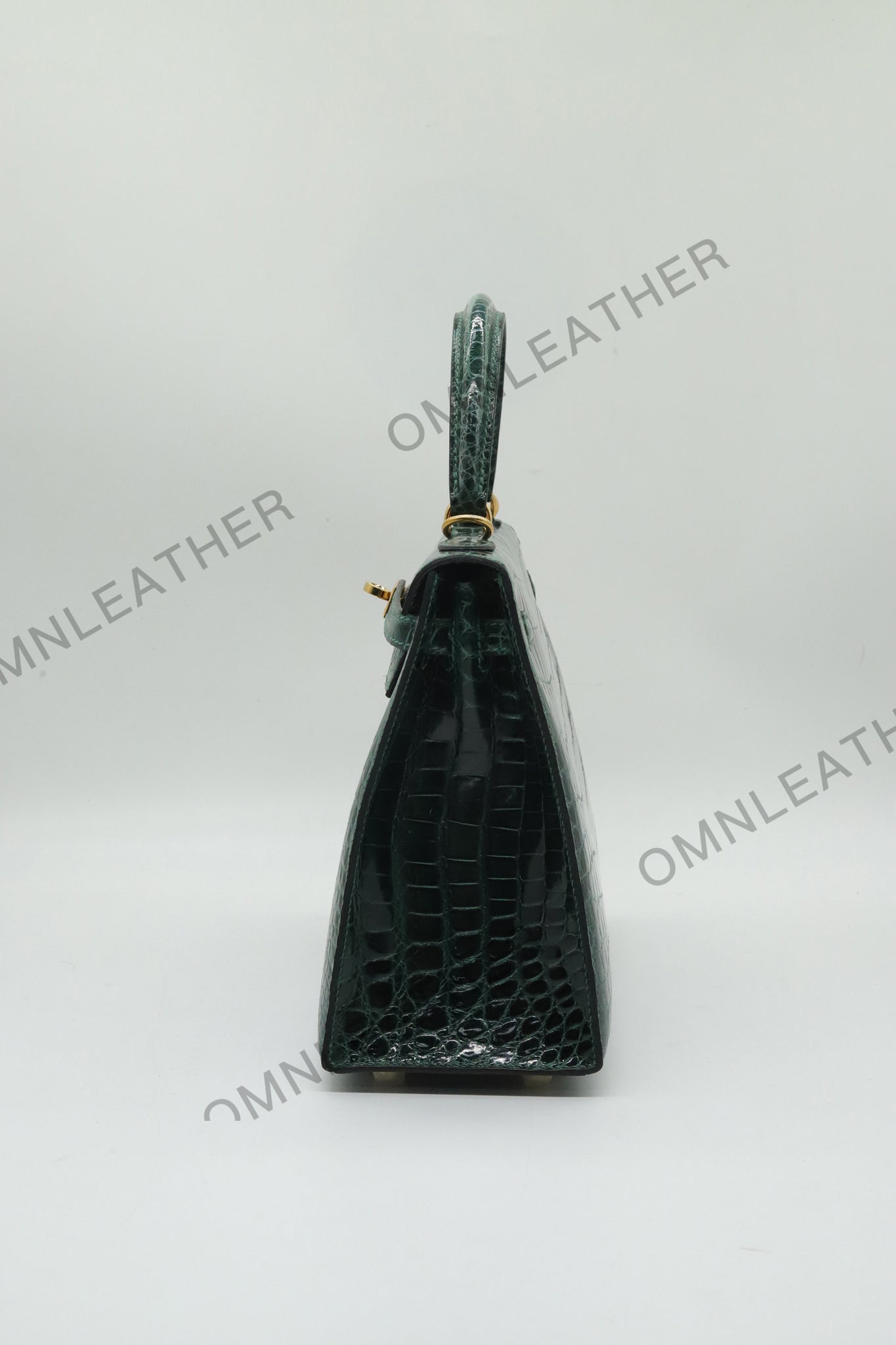 Verona 25 Kelly Style Glossy Saltwater Croc Leather Green Color Gold Hardware