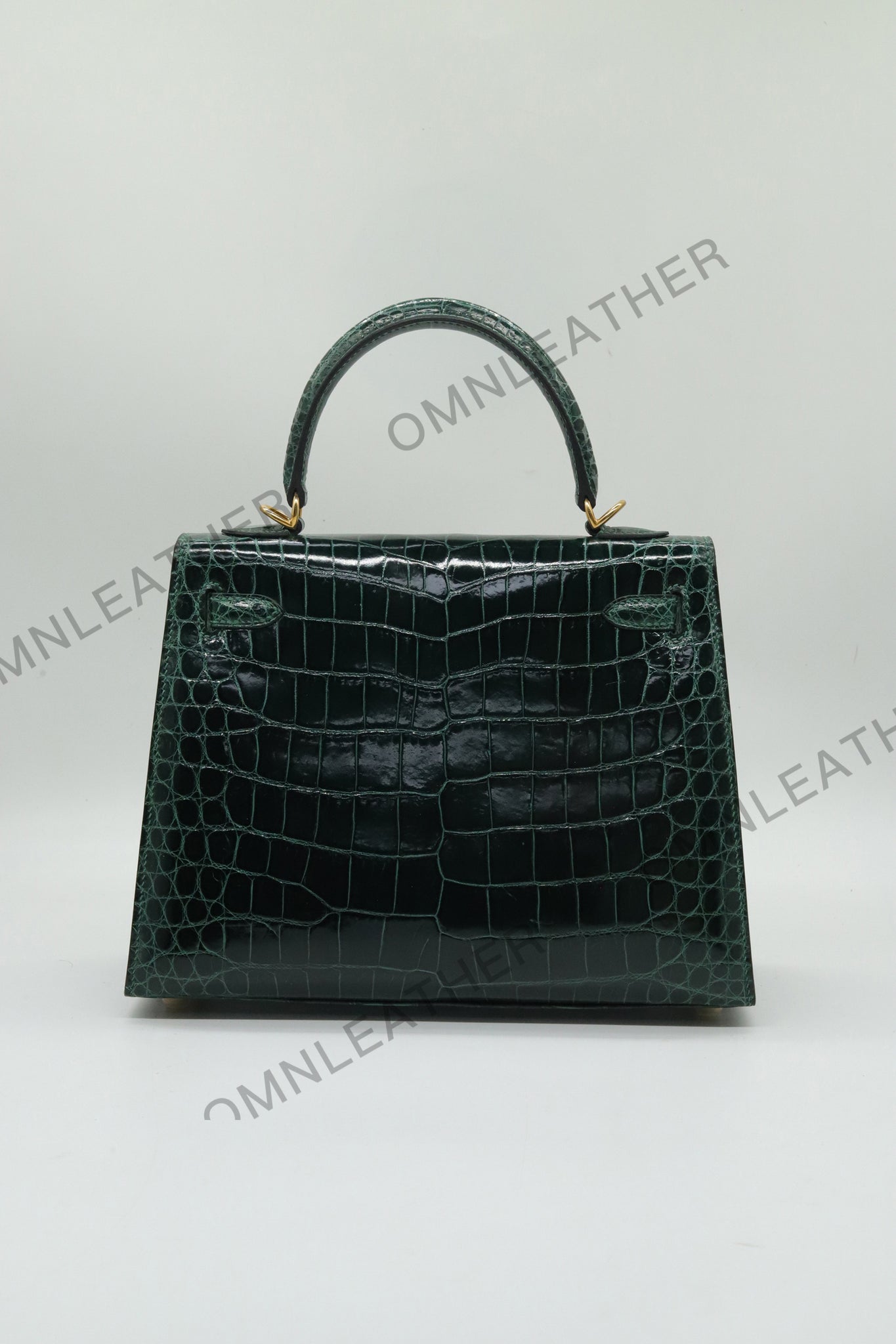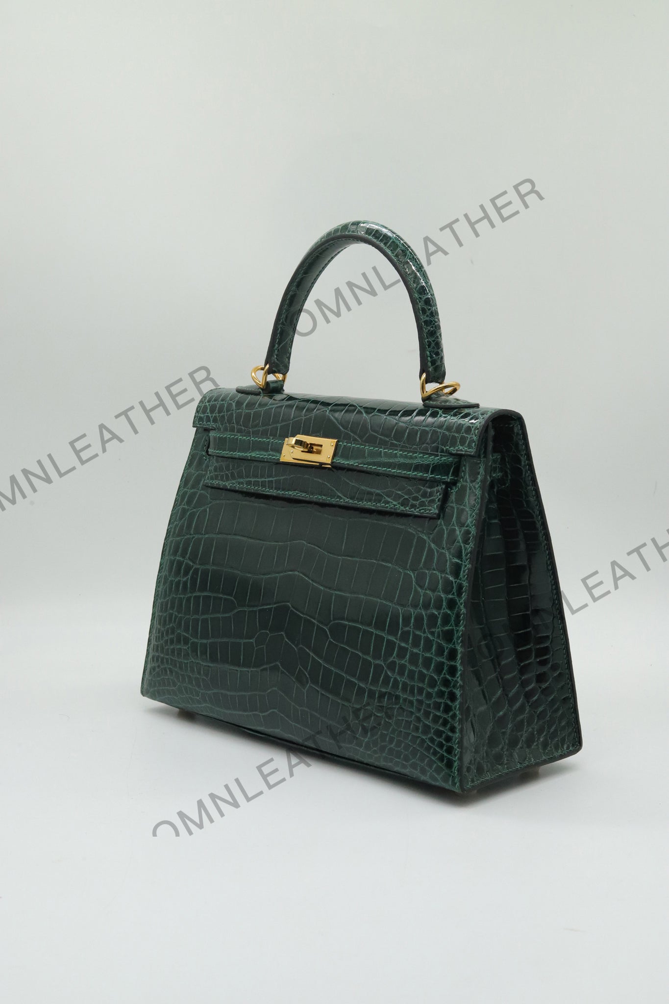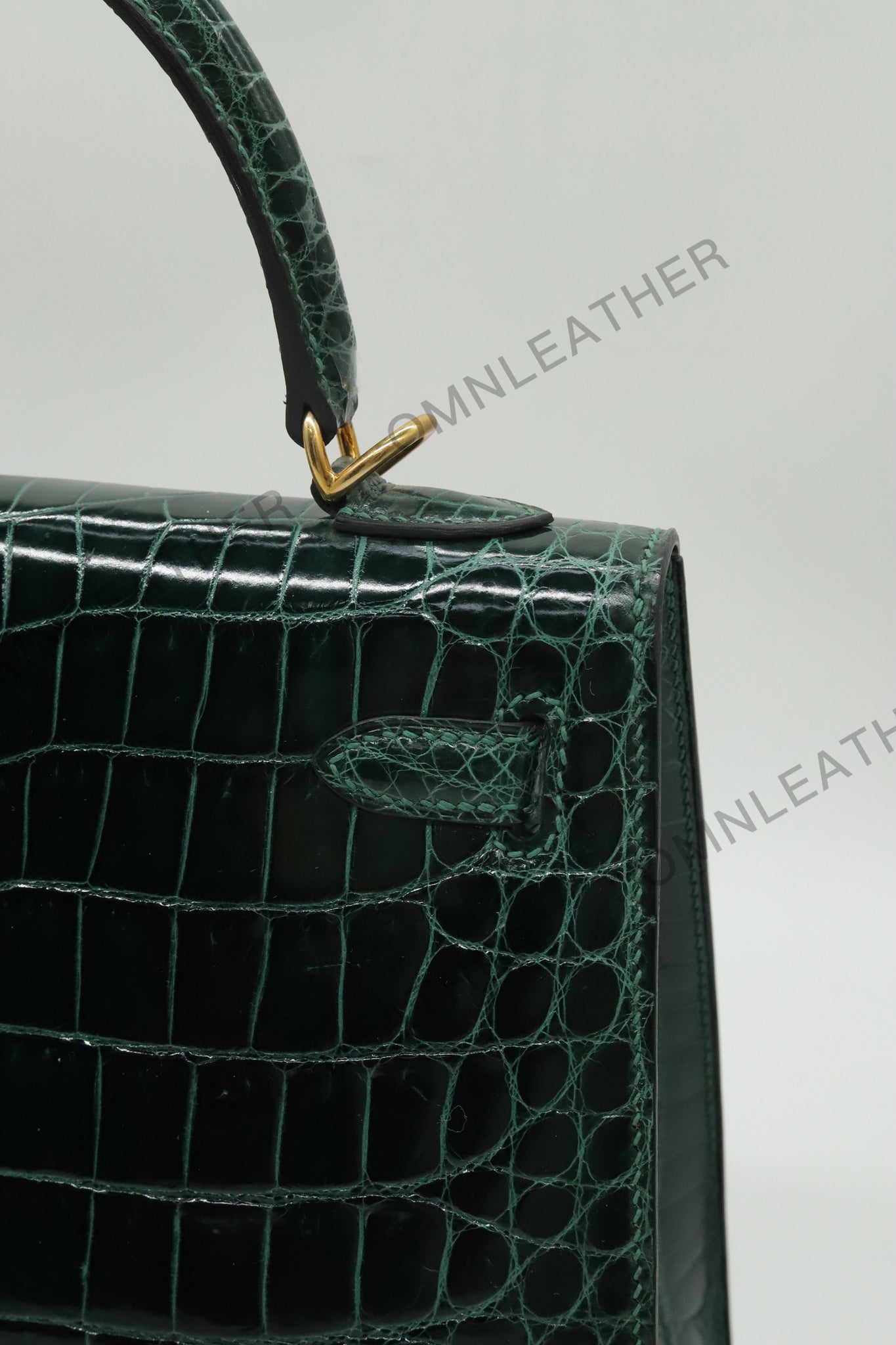 Verona 25 Kelly Style Glossy Saltwater Croc Leather Green Color Gold Hardware