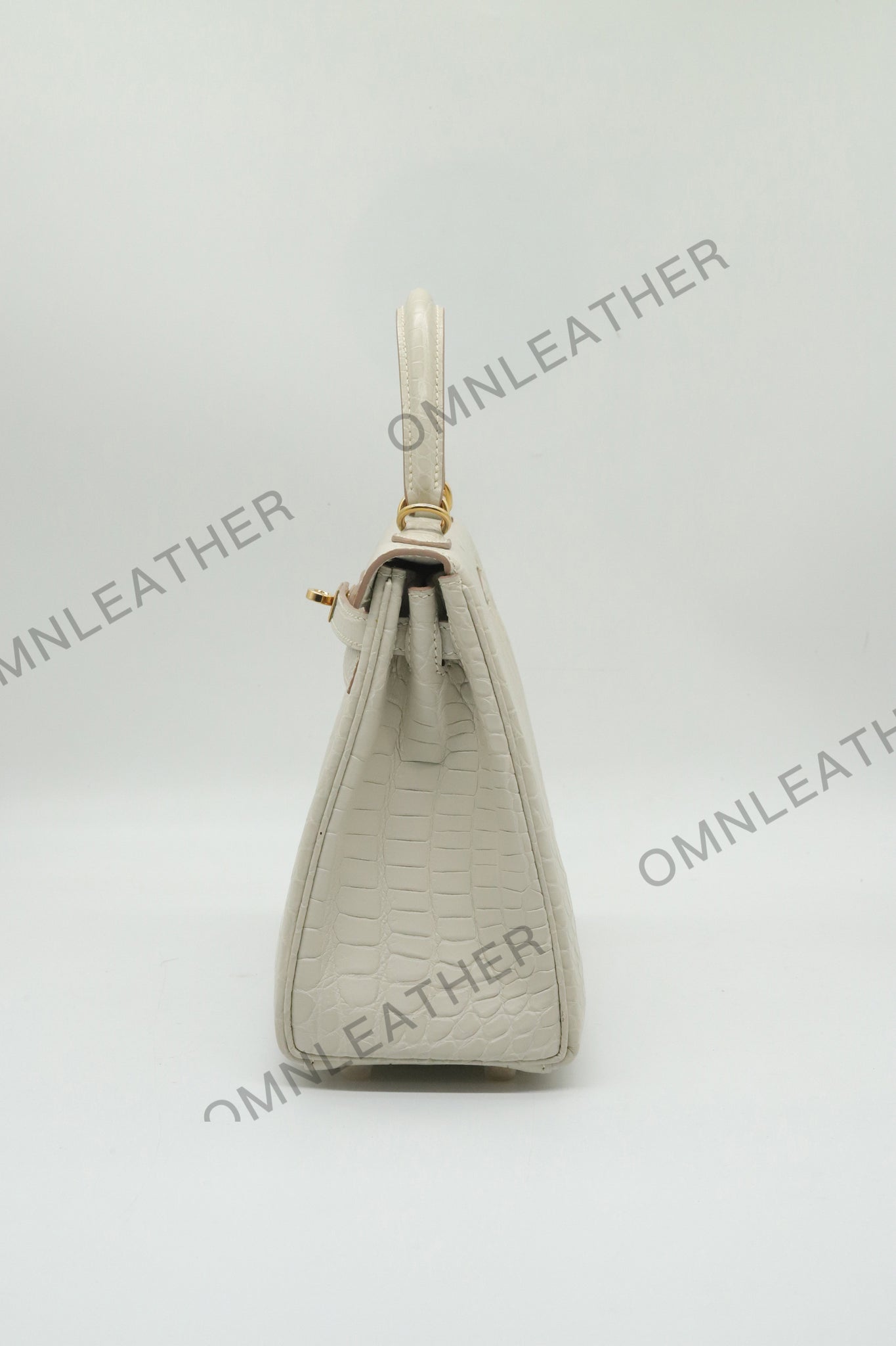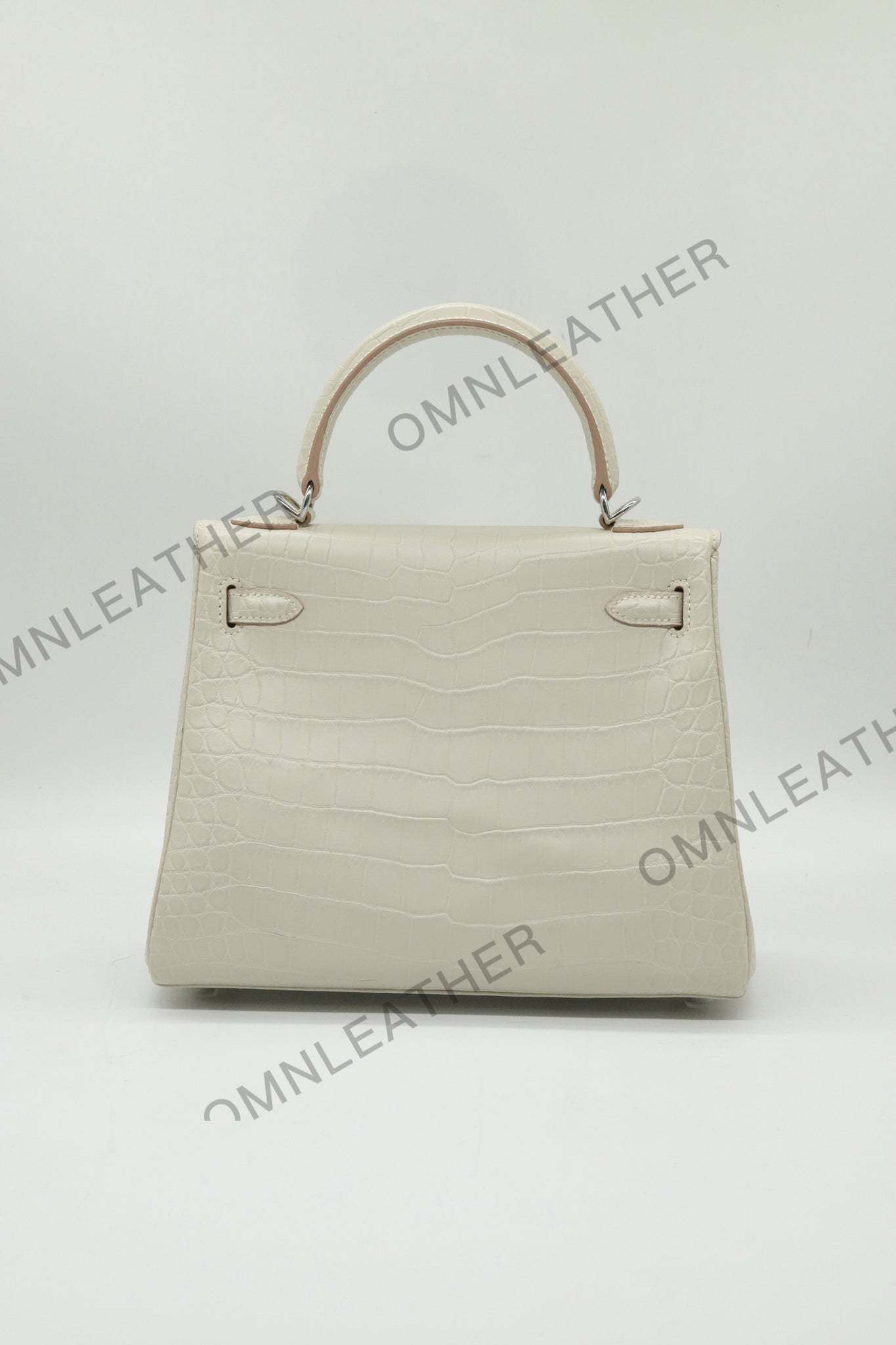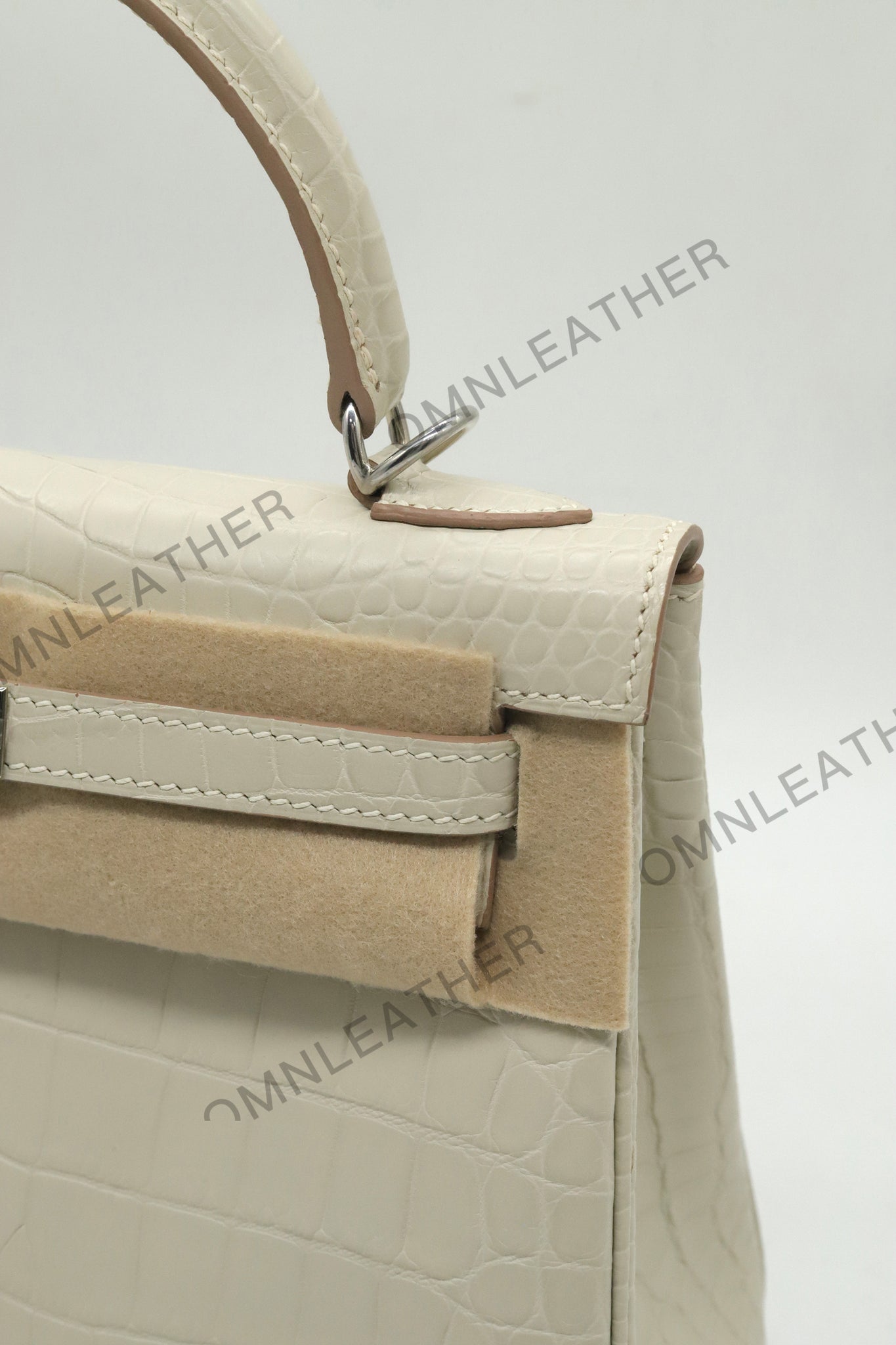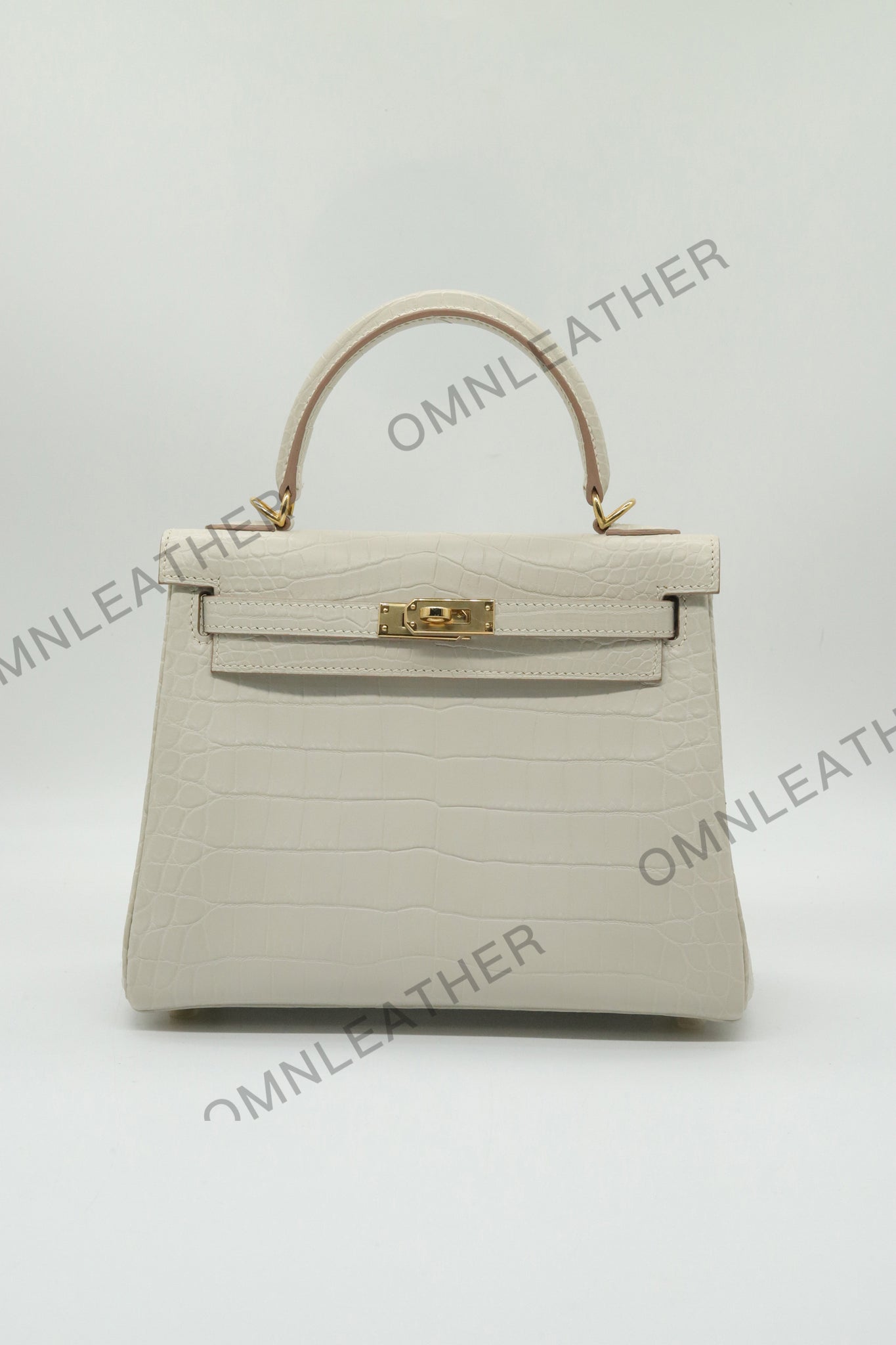 Verona 25 Kelly Style Opaque Saltwater Croc Leather Beton Color Gold Hardware