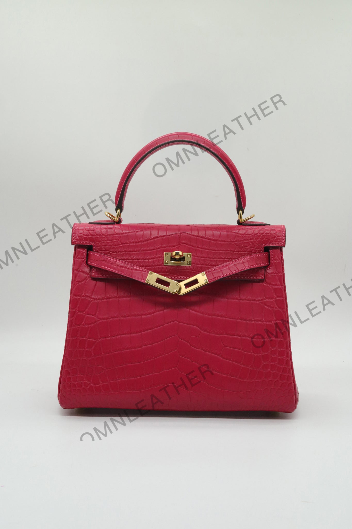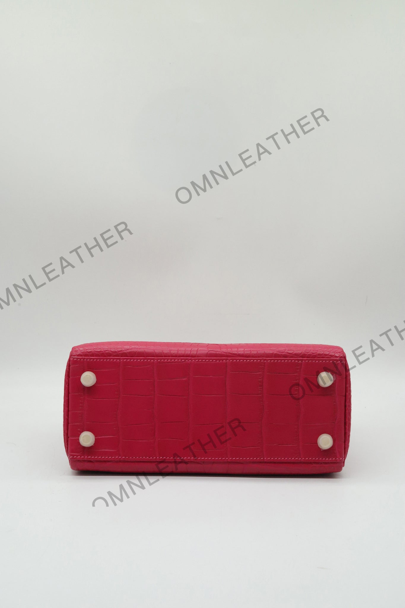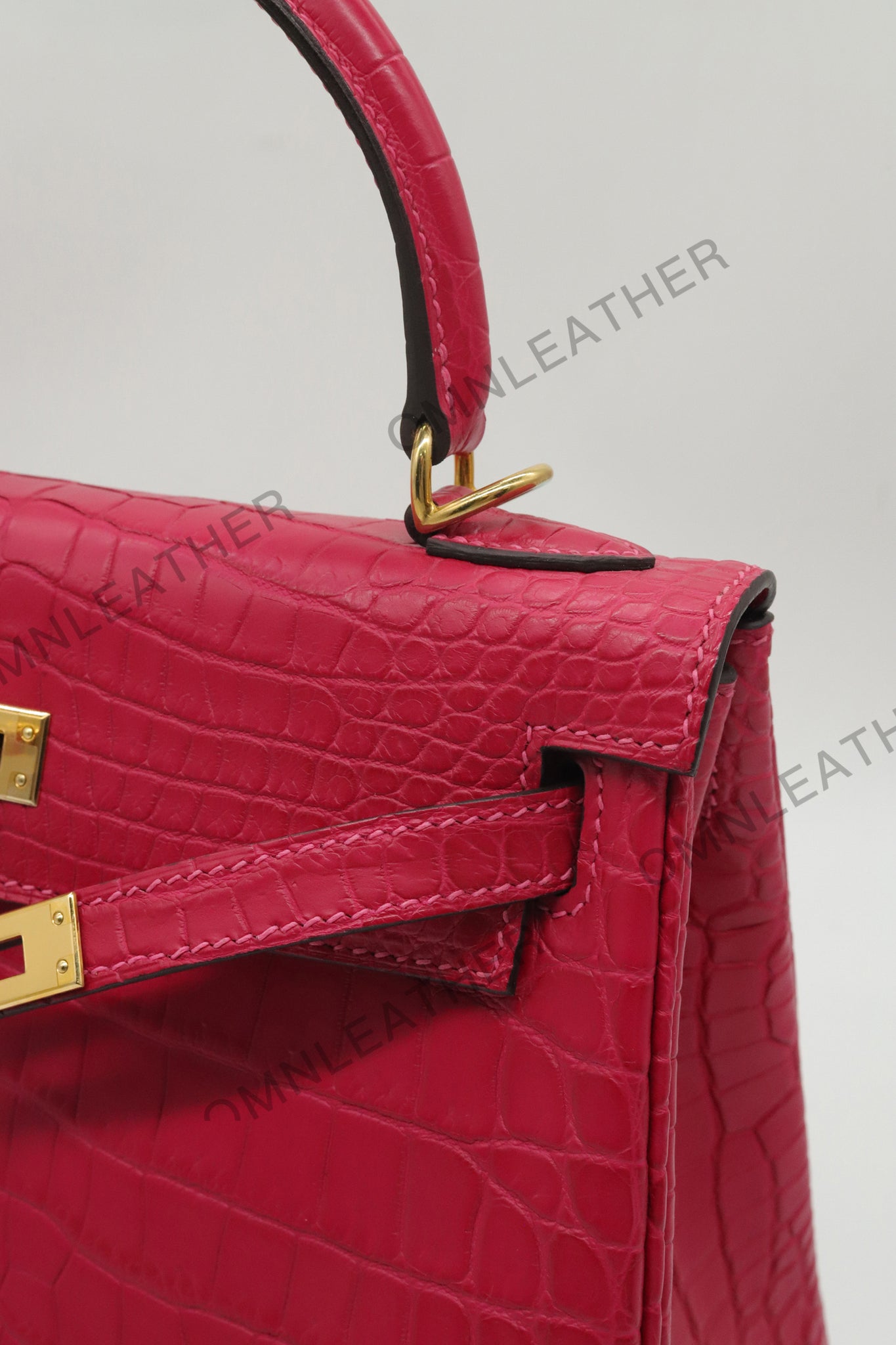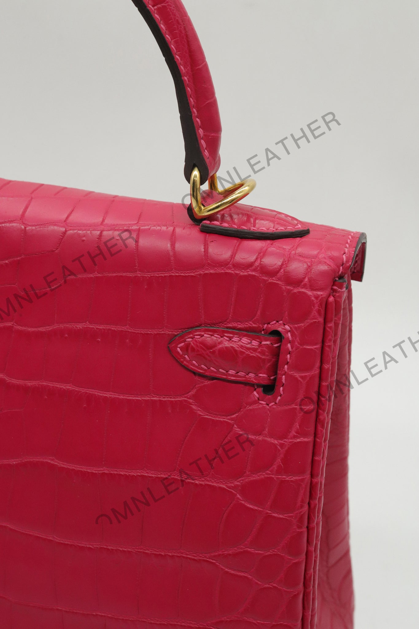 Verona 25 Kelly Style Opaque Saltwater Croc Leather Fuschia Color Gold Hardware