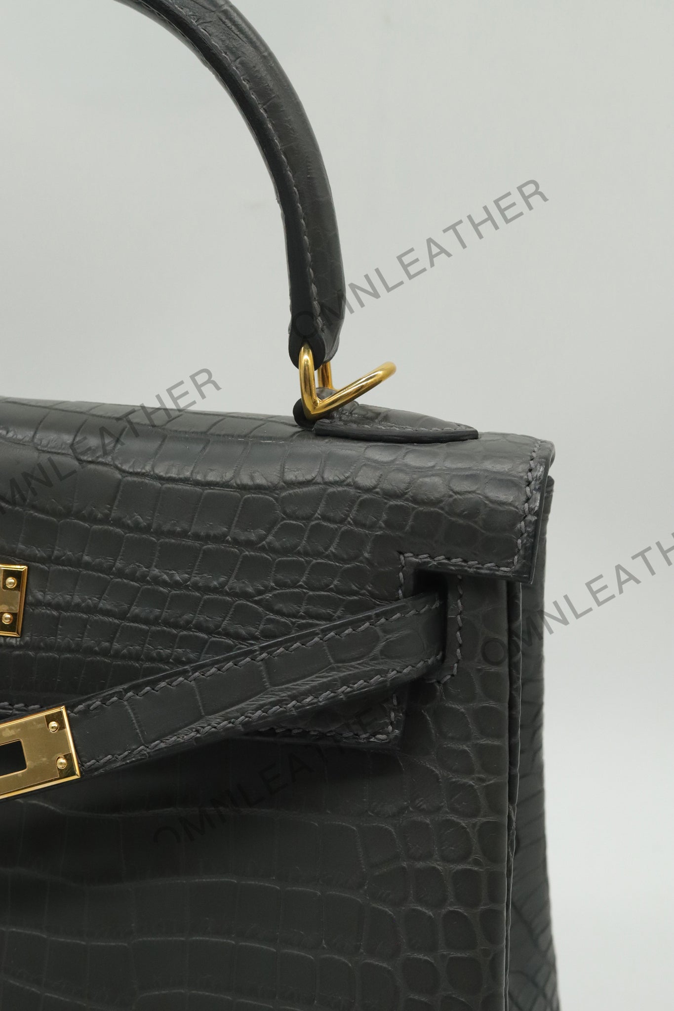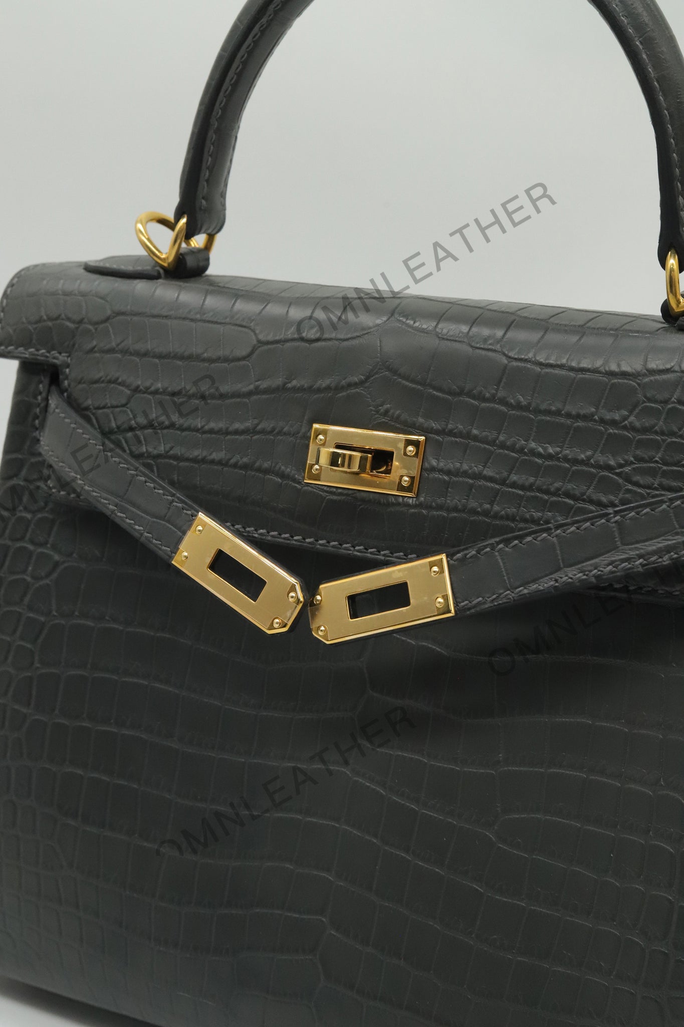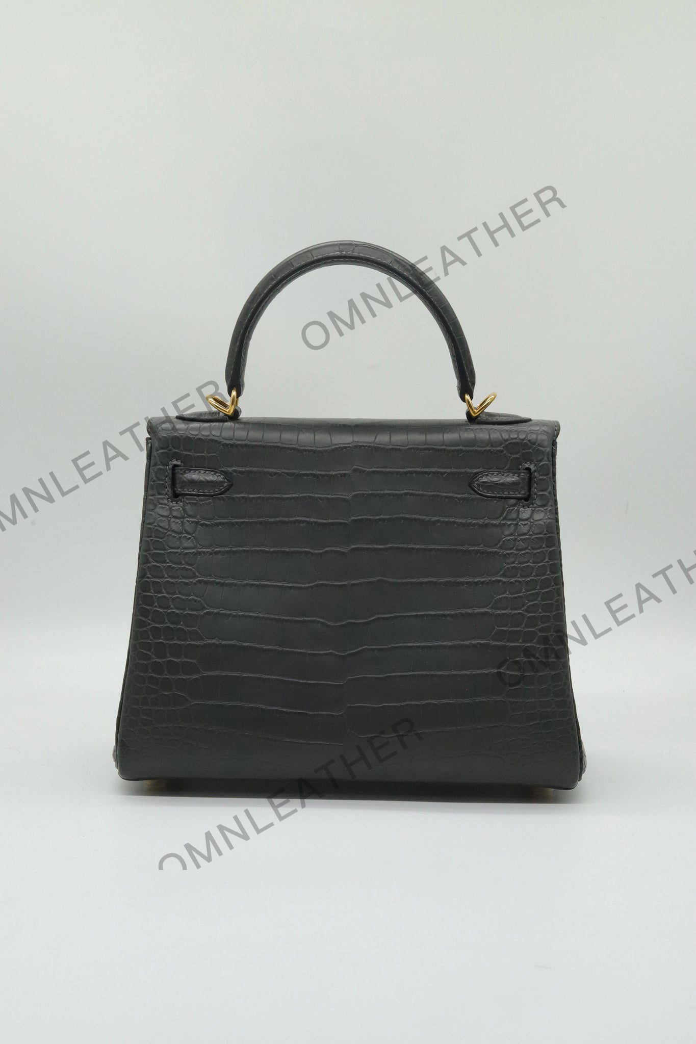 Verona 25 Kelly Style Opaque Saltwater Croc Leather Graphite Grey Color Gold Hardware