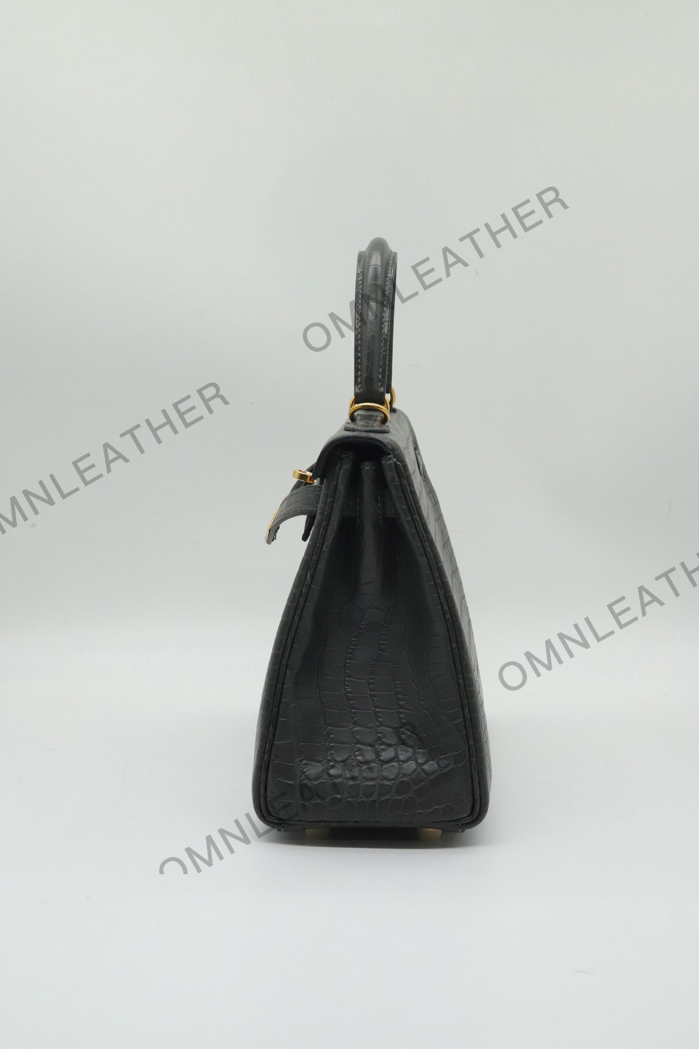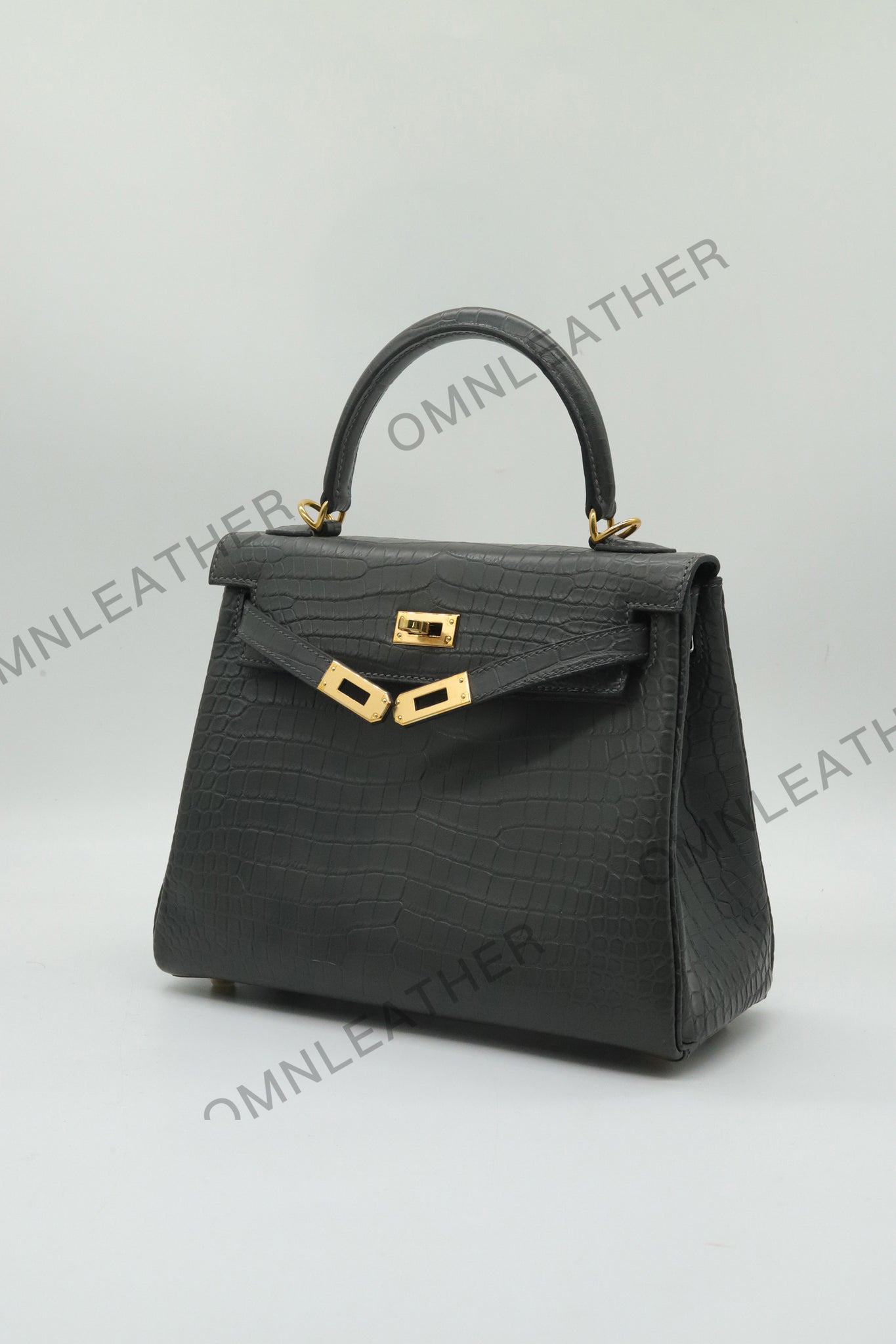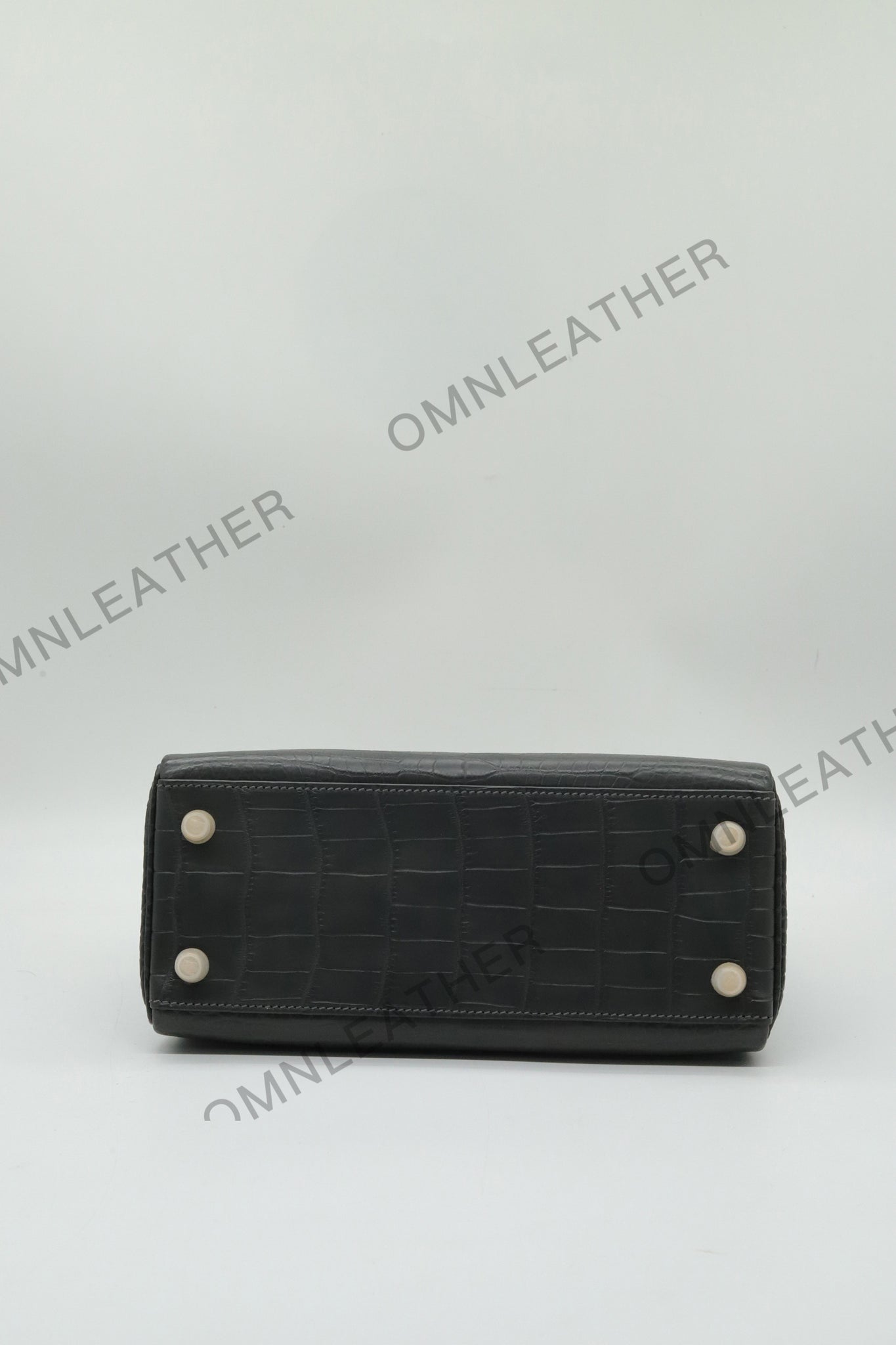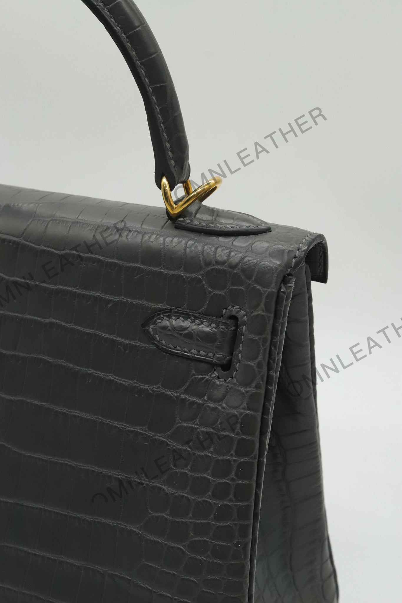 Verona 25 Kelly Style Opaque Saltwater Croc Leather Graphite Grey Color Gold Hardware