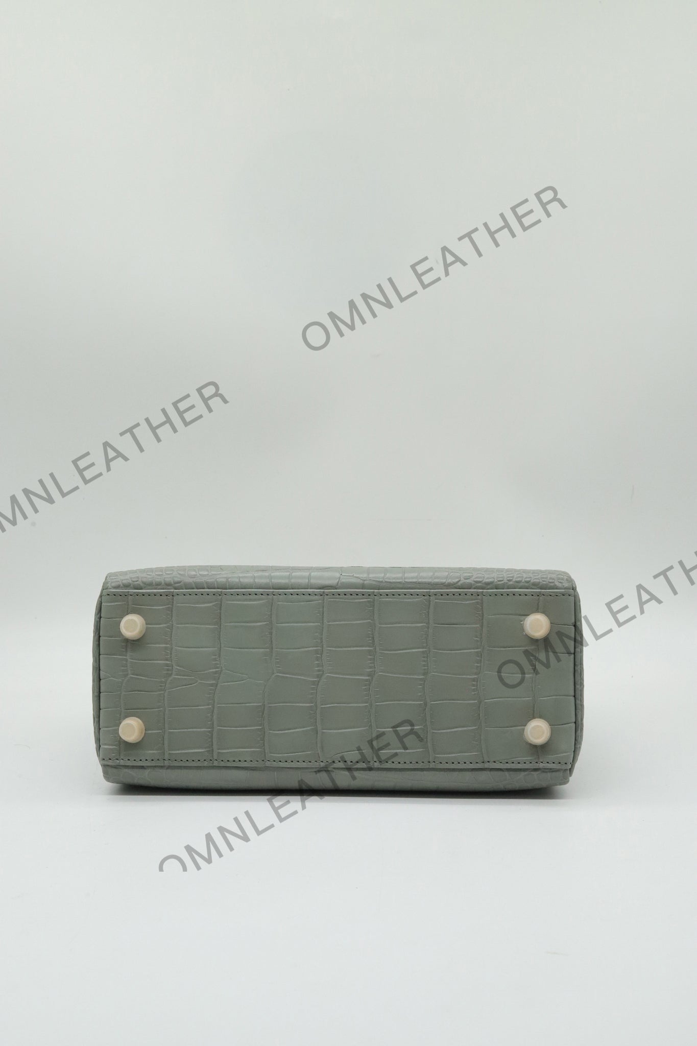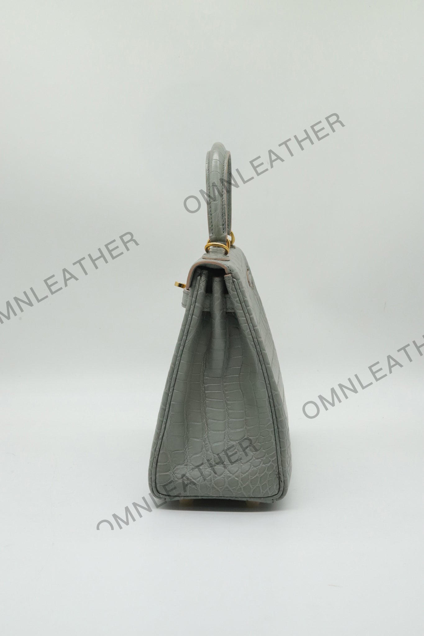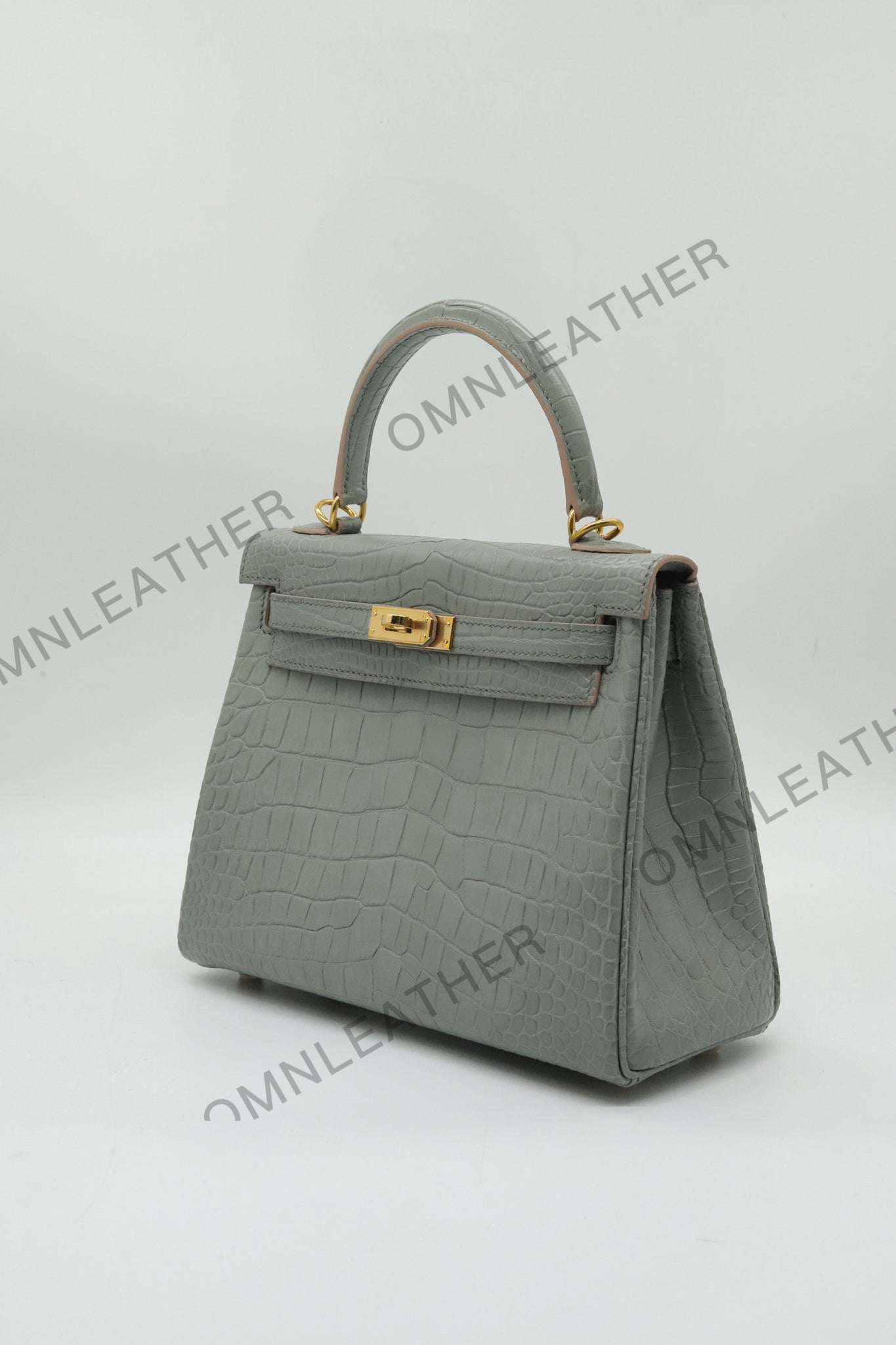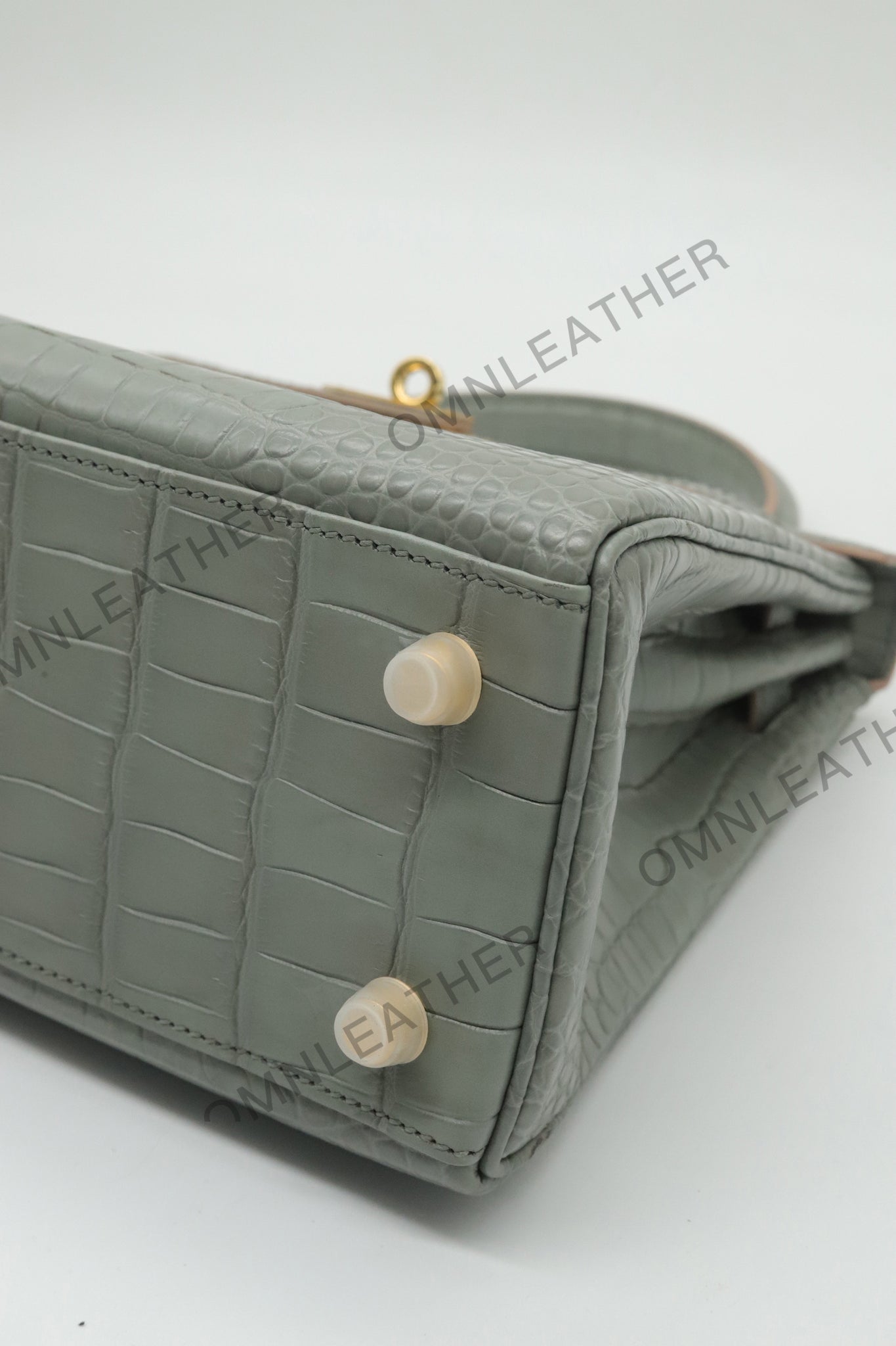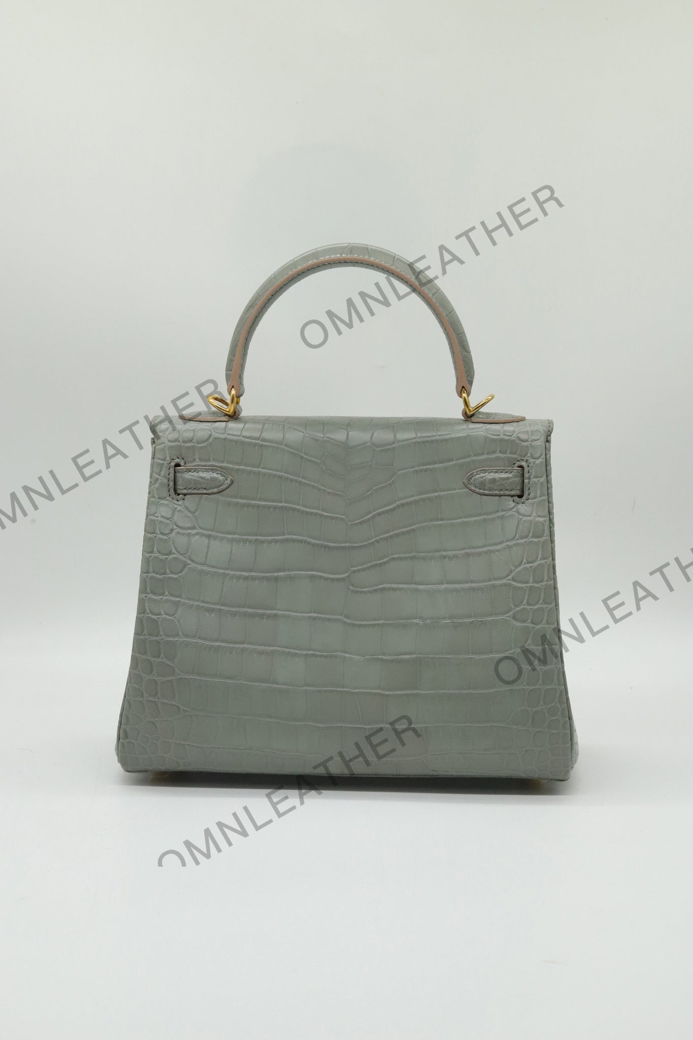 Verona 25 Kelly Style Opaque Saltwater Croc Leather Grey Color Gold Hardware