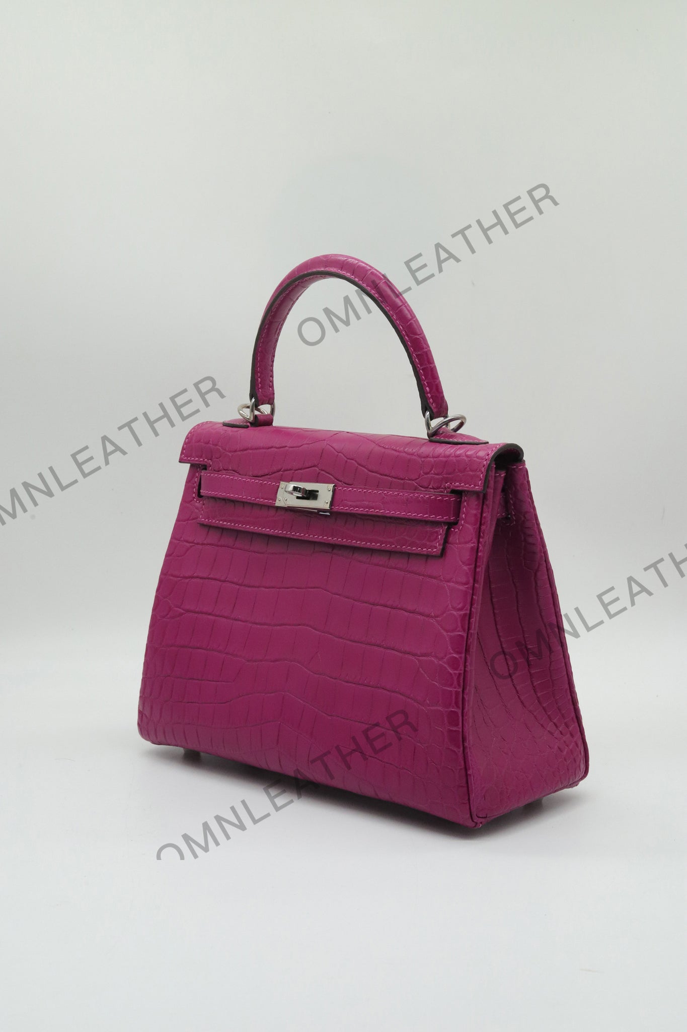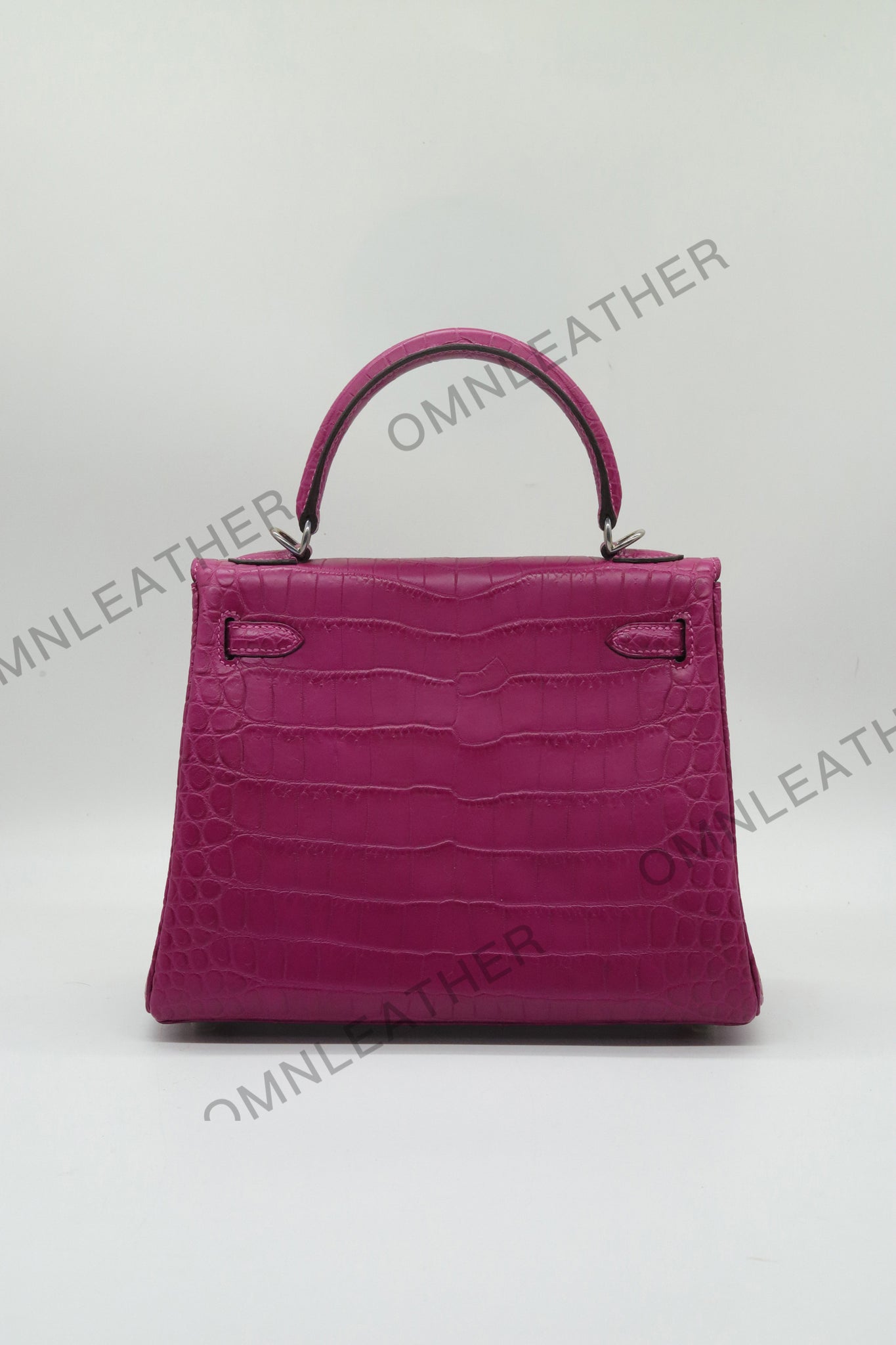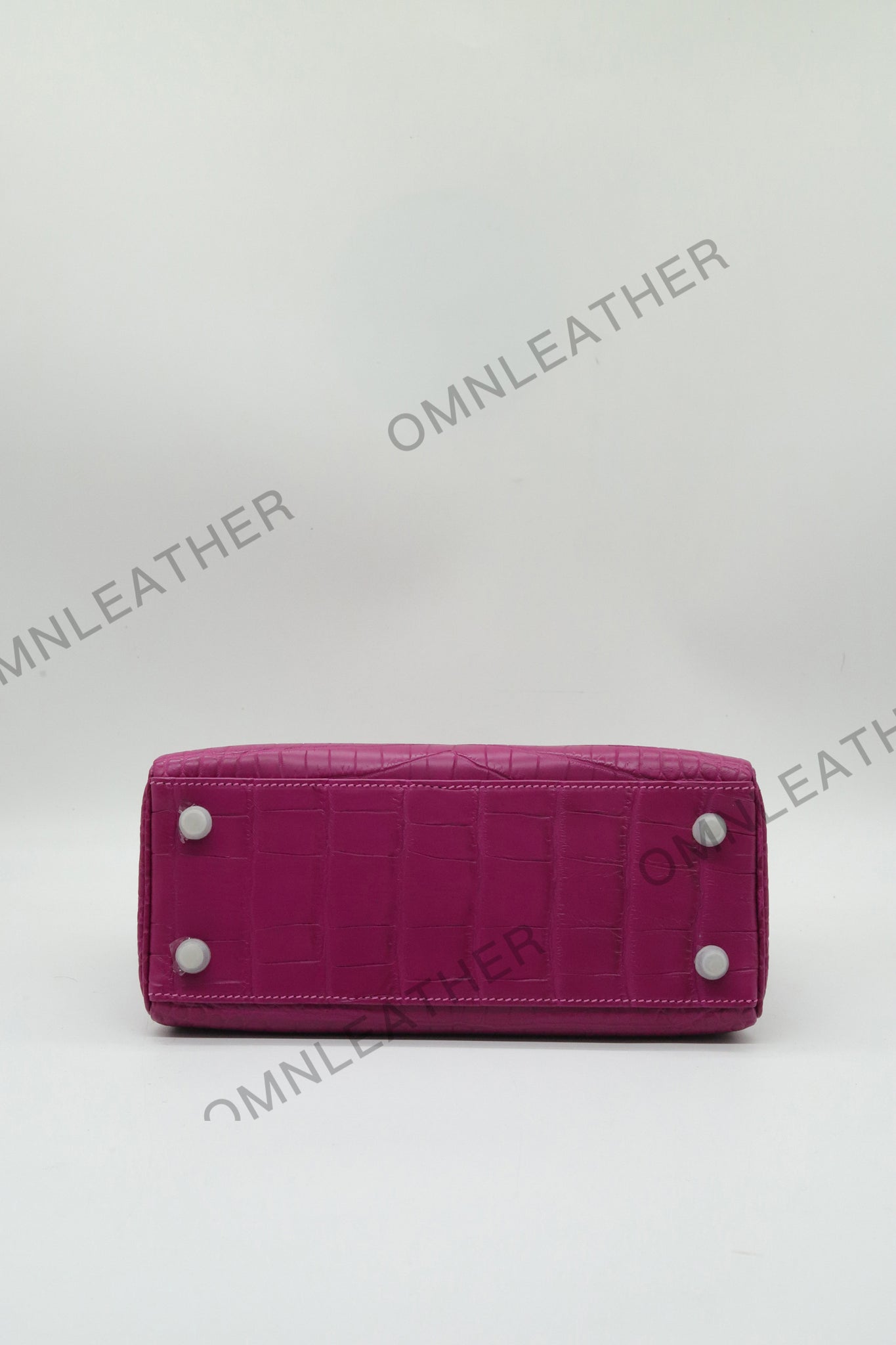Verona 25 Kelly Style Opaque Saltwater Croc Leather Purple Color Silver Hardware