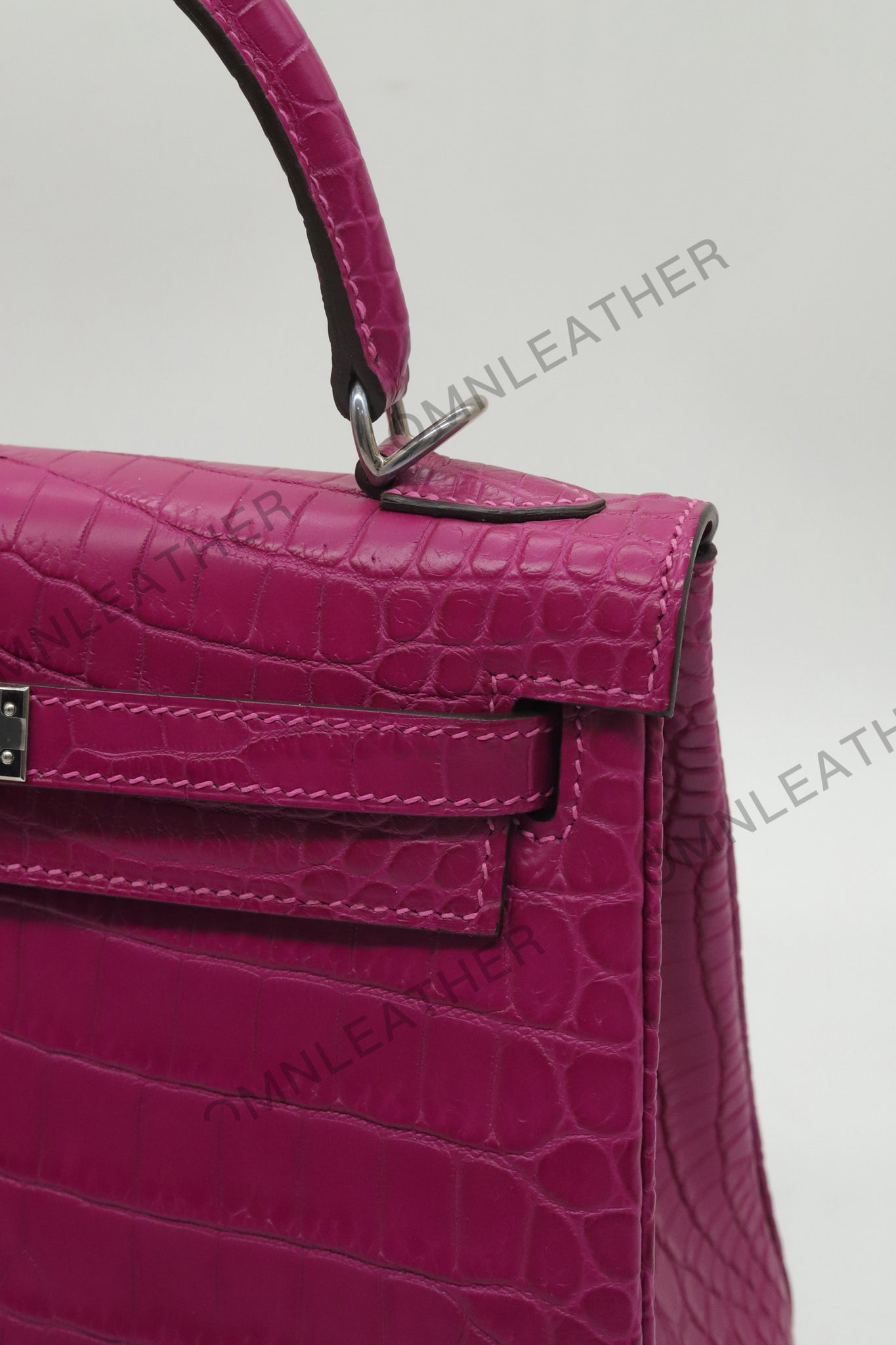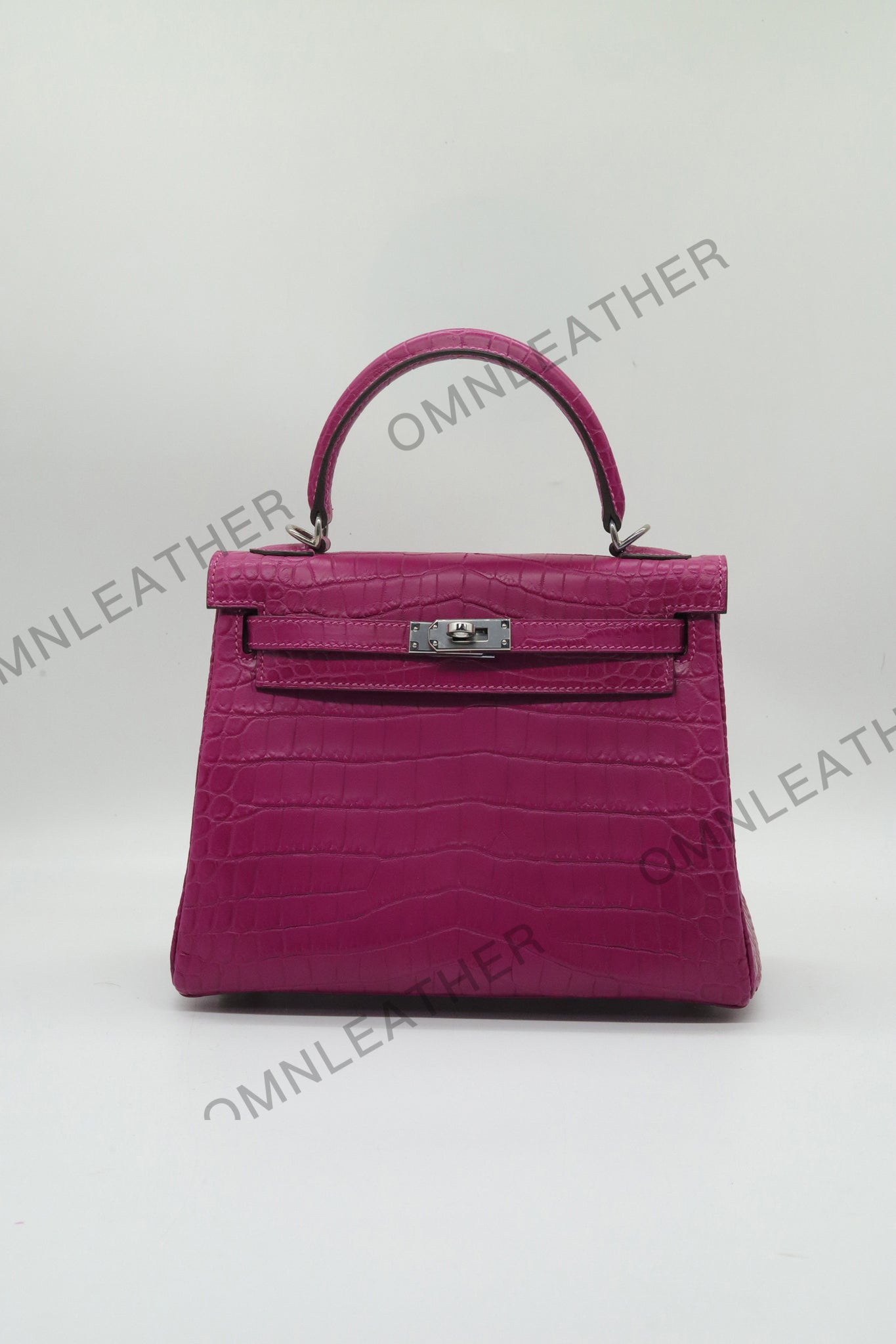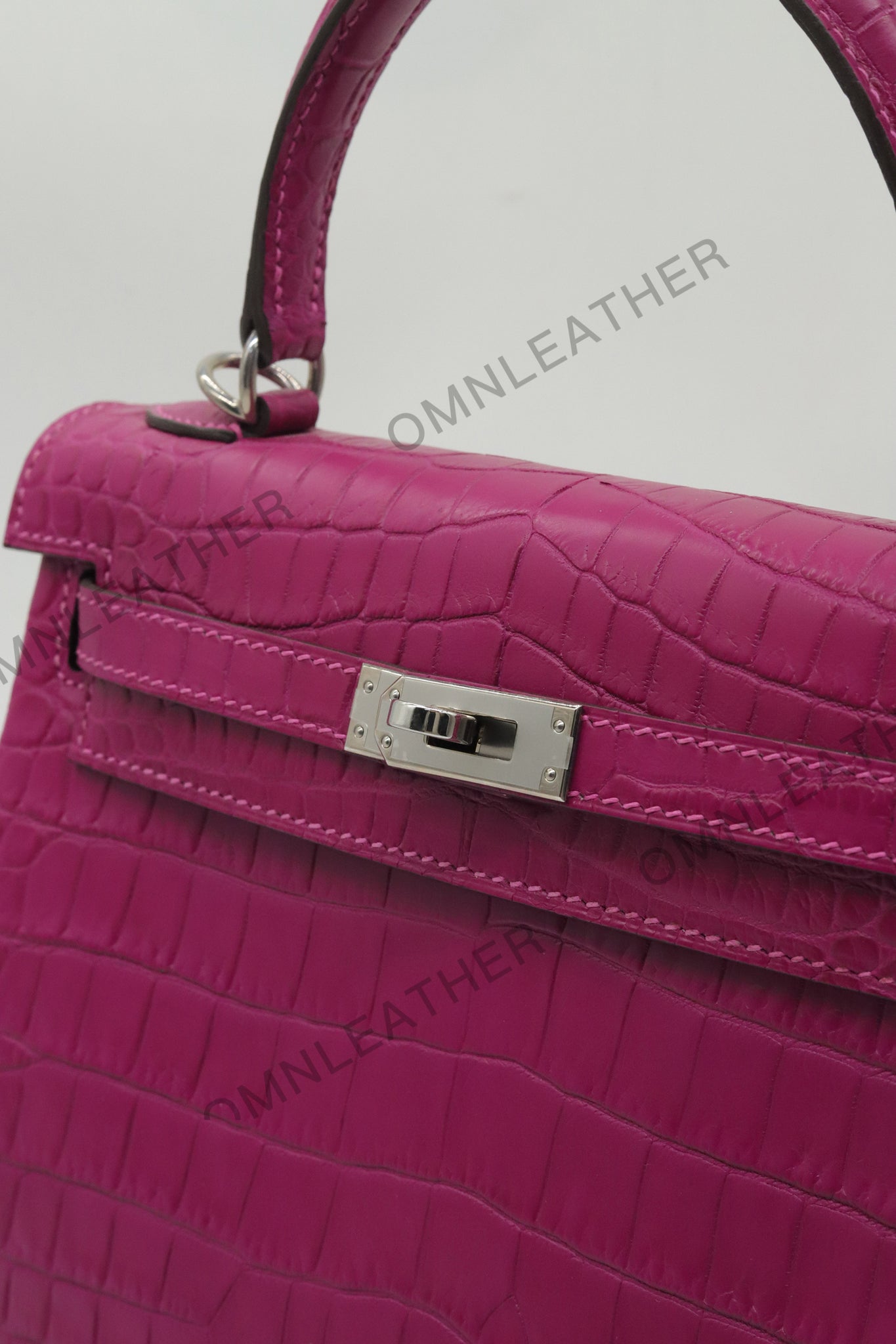 Verona 25 Kelly Style Opaque Saltwater Croc Leather Purple Color Silver Hardware