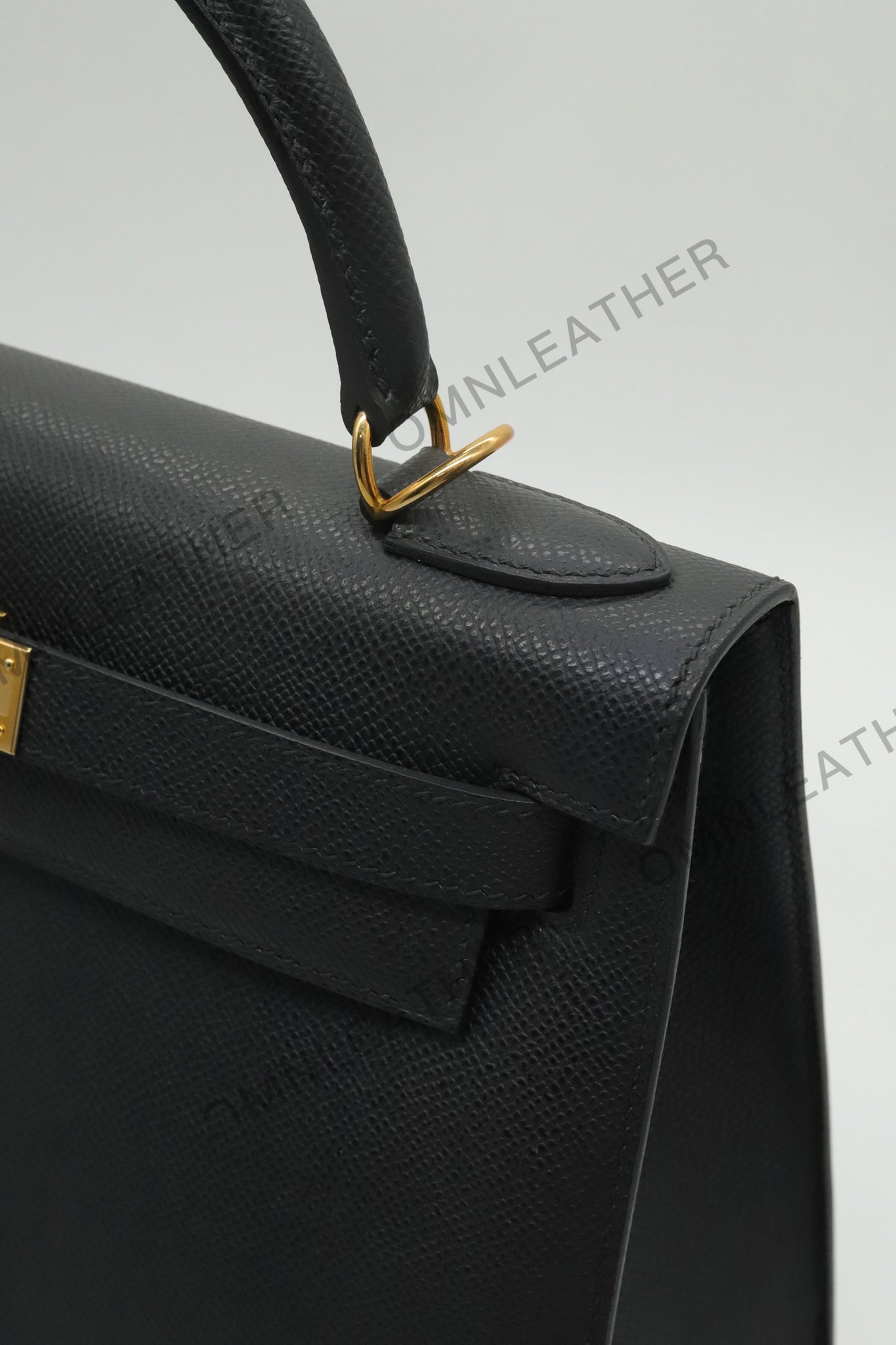 Verona 28 Kelly Style Fully Handmade Epsom Leather Black Color Gold Hardware