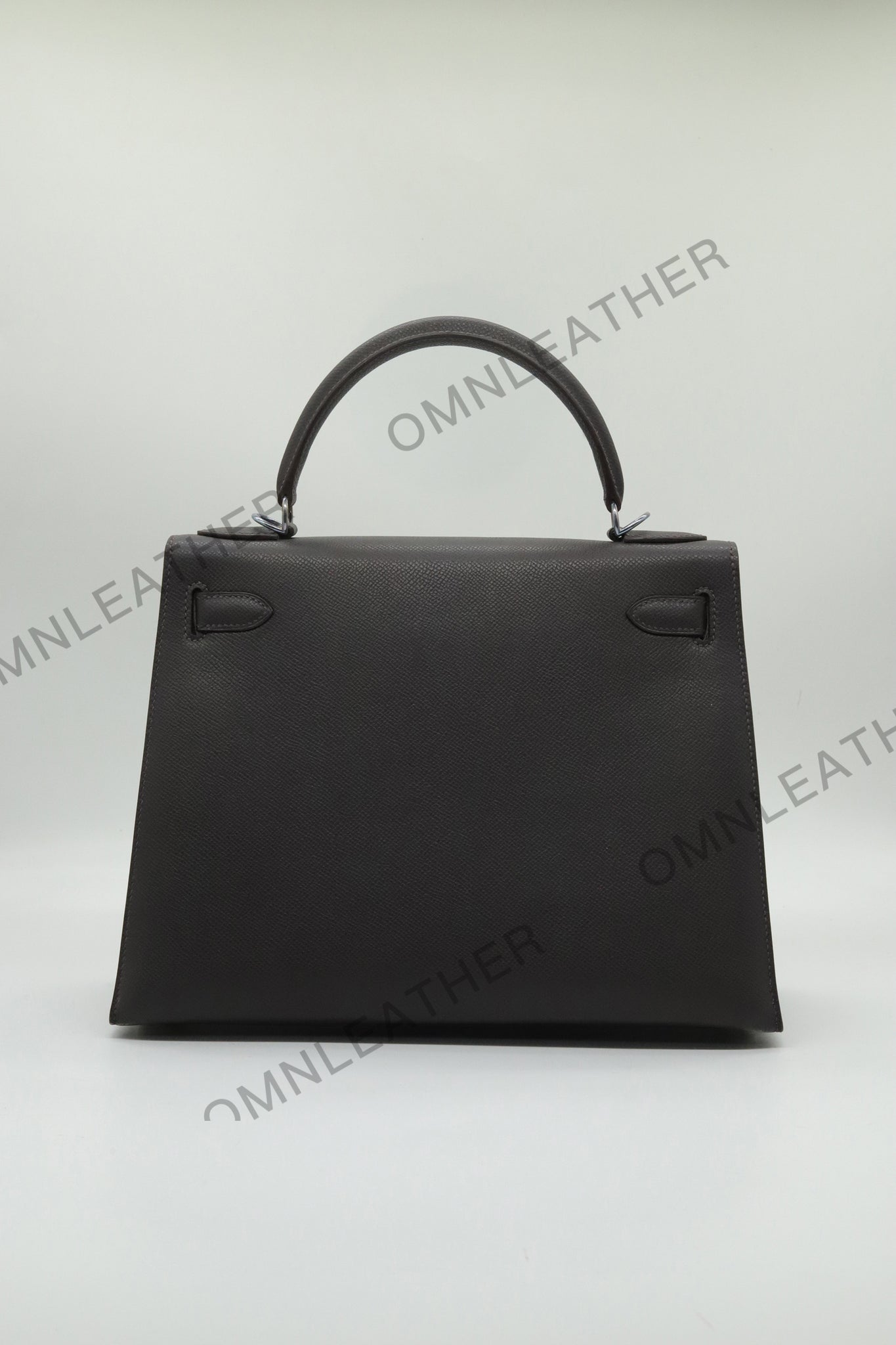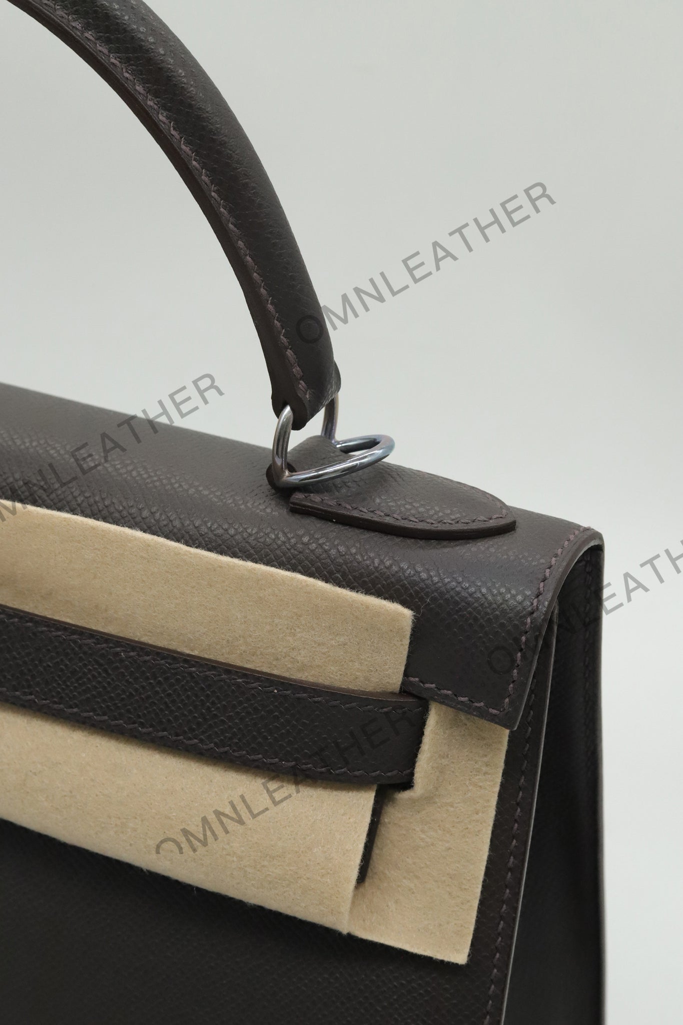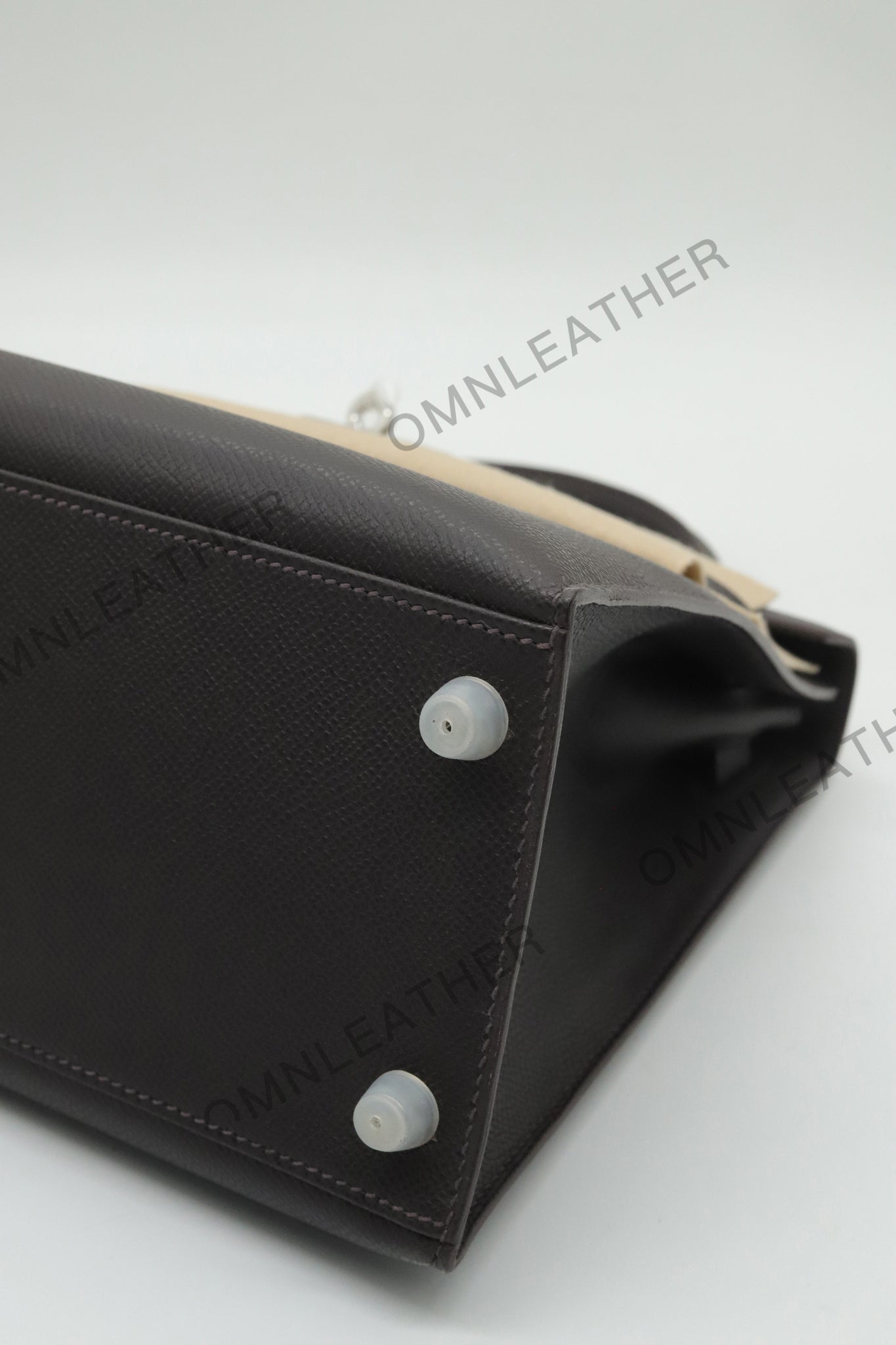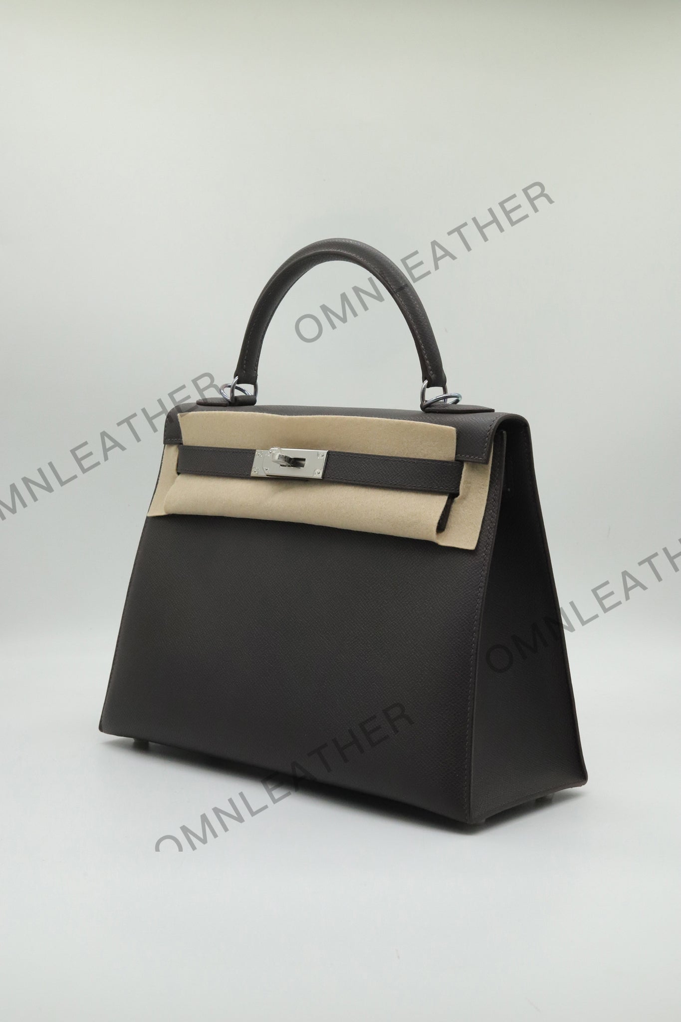 Verona 28 Kelly Style Fully Handmade Epsom Leather Ebony Color Silver Hardware