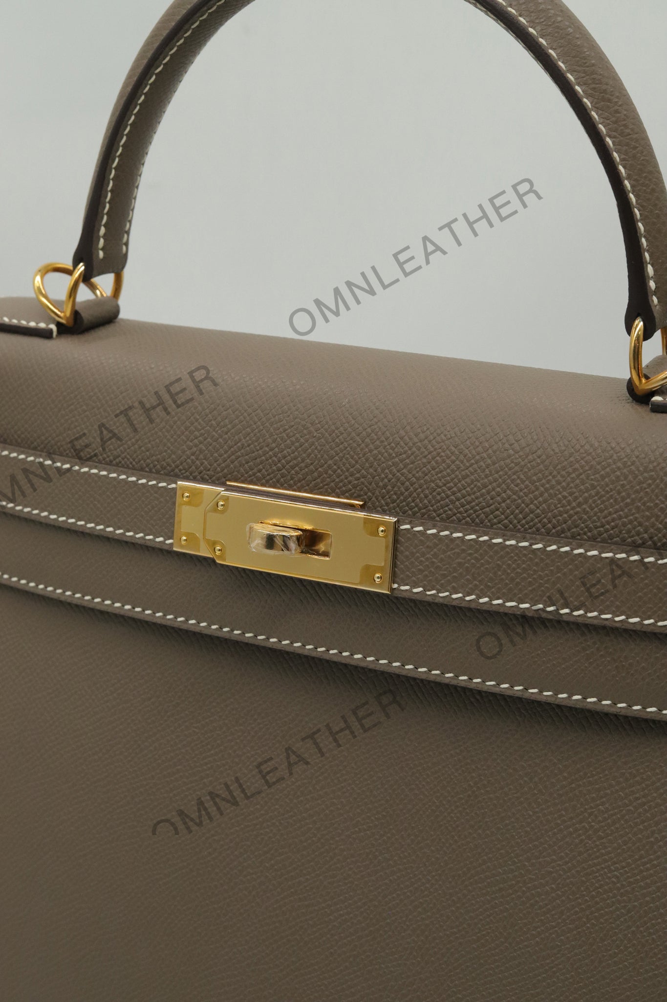 Verona 28 Kelly Style Fully Handmade Epsom Leather Etoupe Color Gold Hardware
