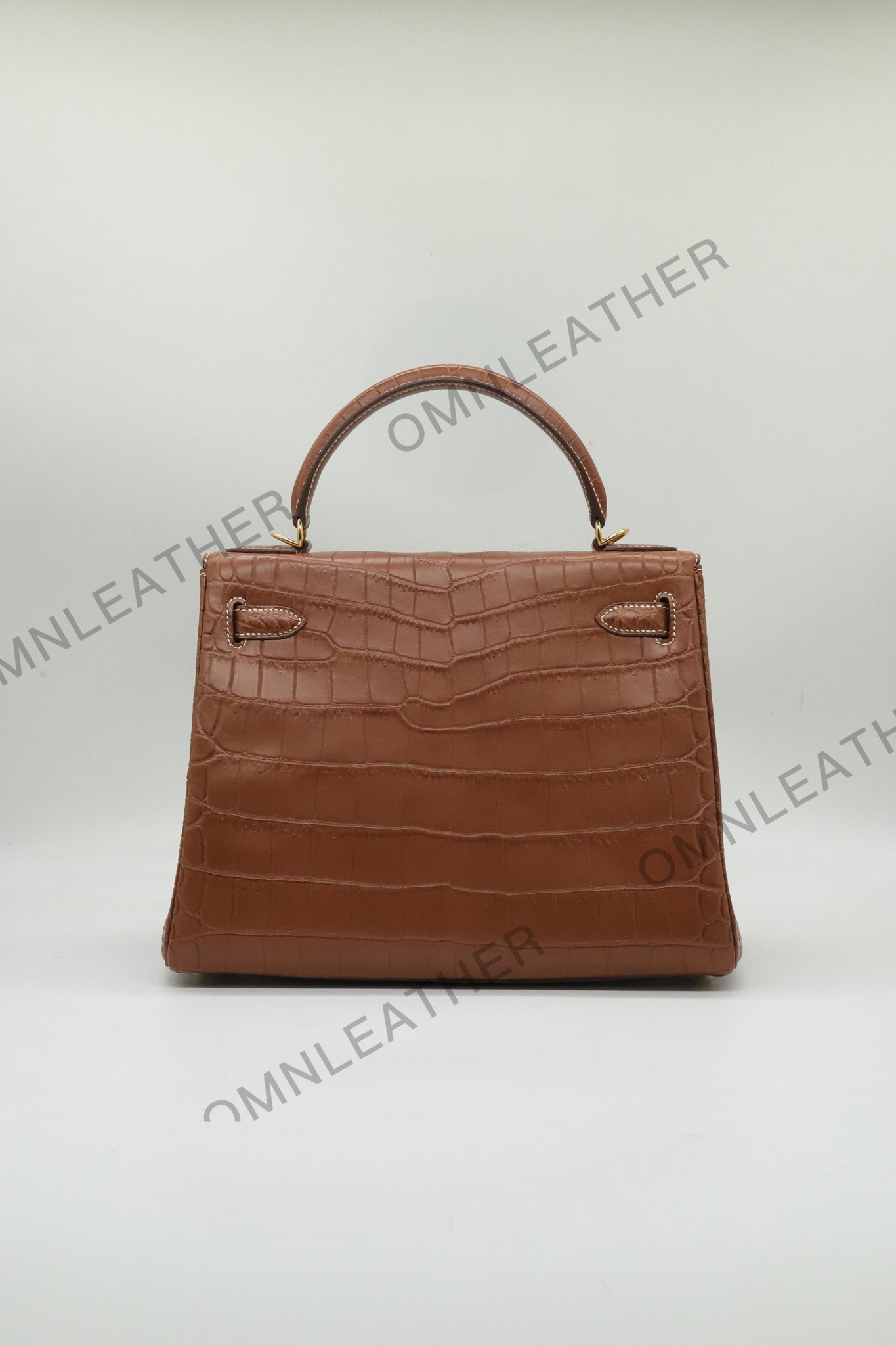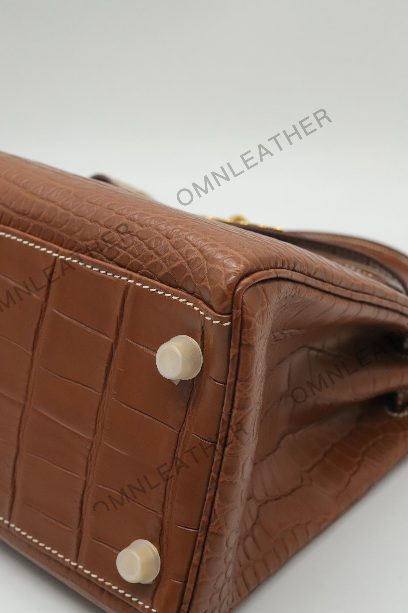 Verona 28 Kelly Style Opaque Saltwater Croc Leather Brown Color Gold Hardware